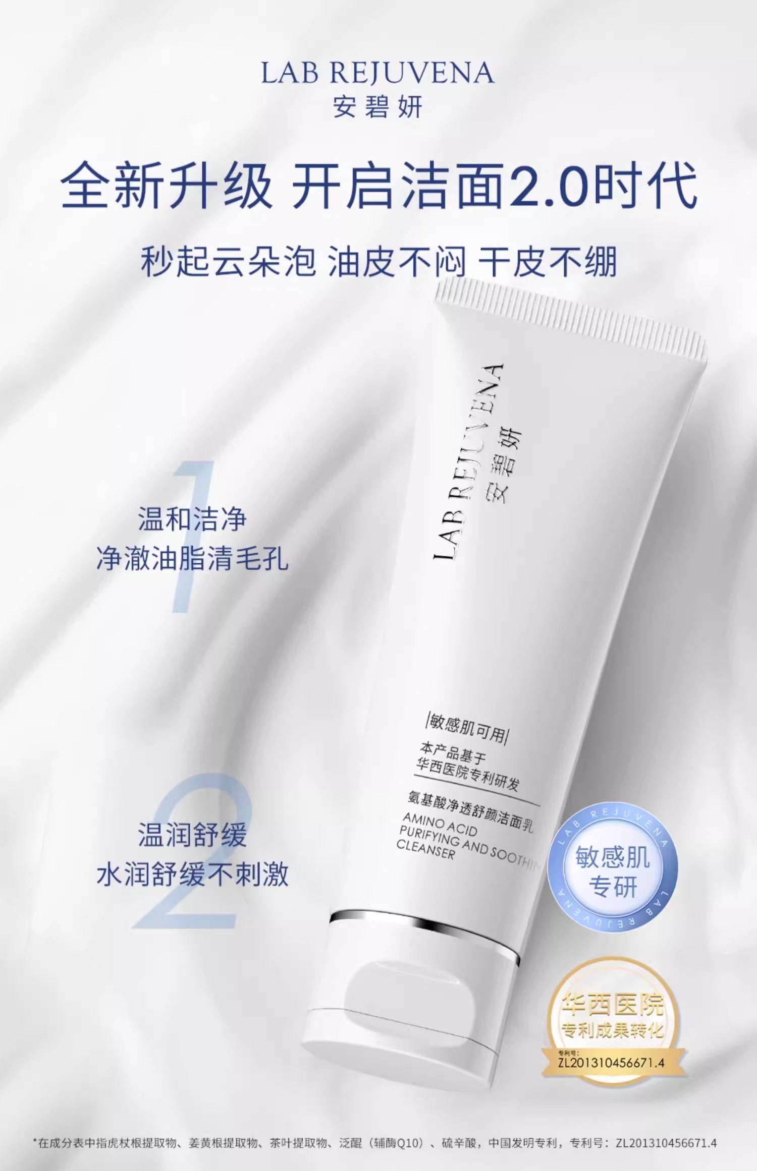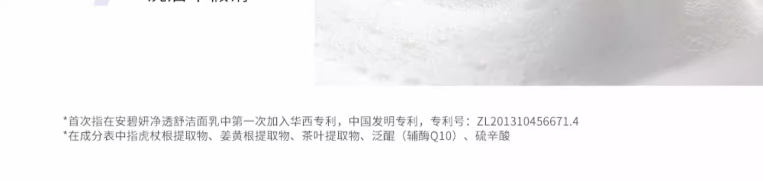 安碧妍氨基酸净透舒颜洁面乳120g/支(三核洁面)