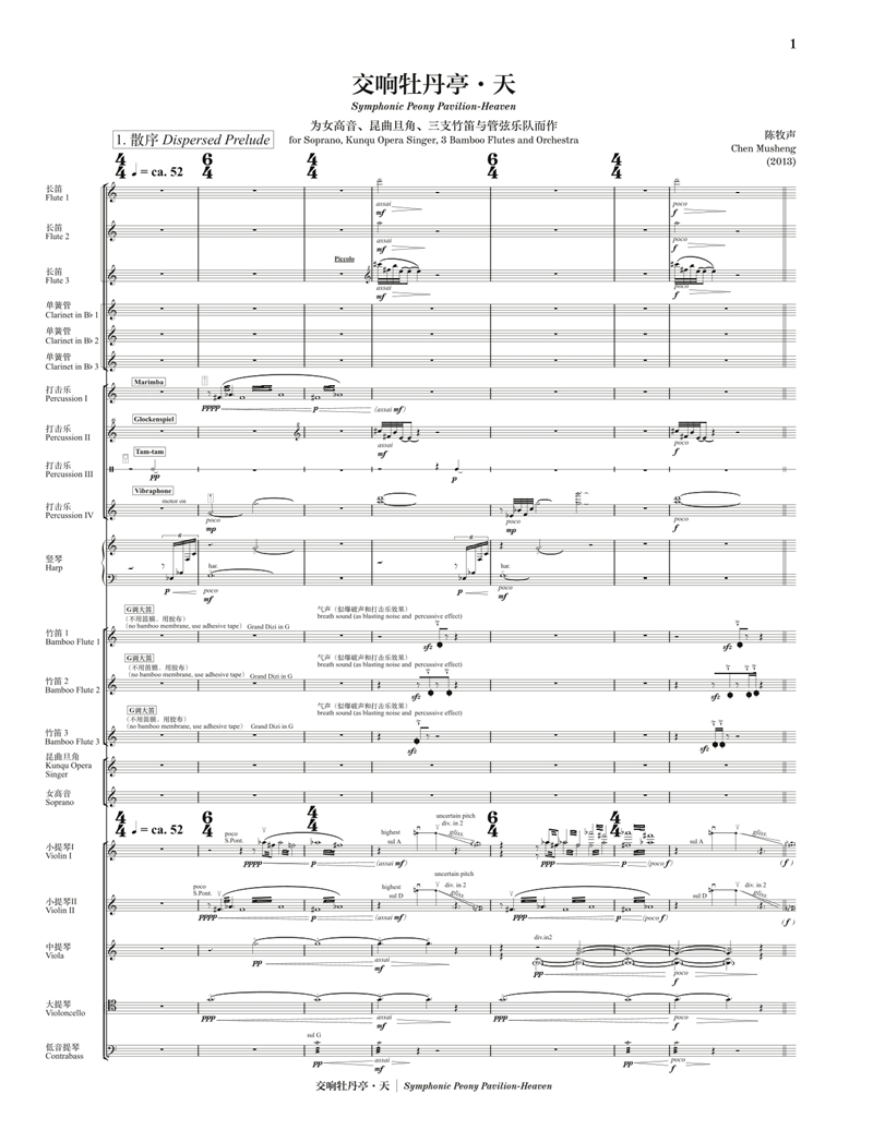 《交响牡丹亭·天》总谱 陈牧声作曲 为女高音、昆曲旦角、三支竹笛与管弦乐队而作