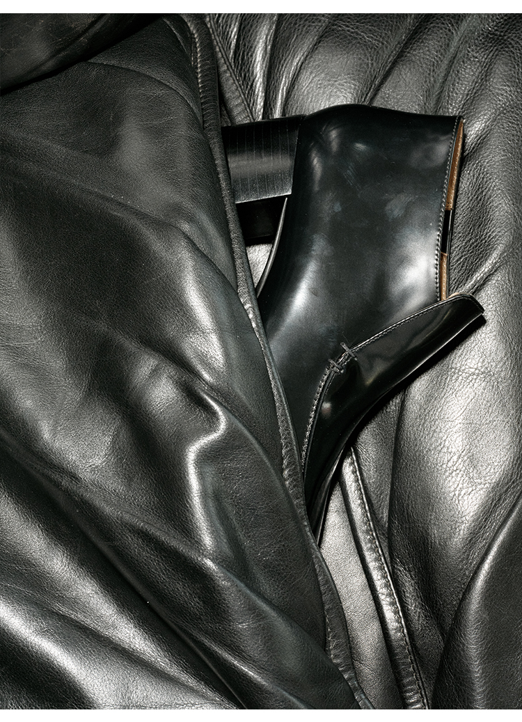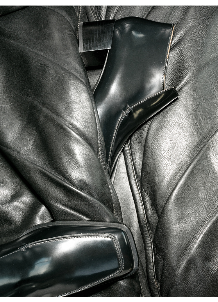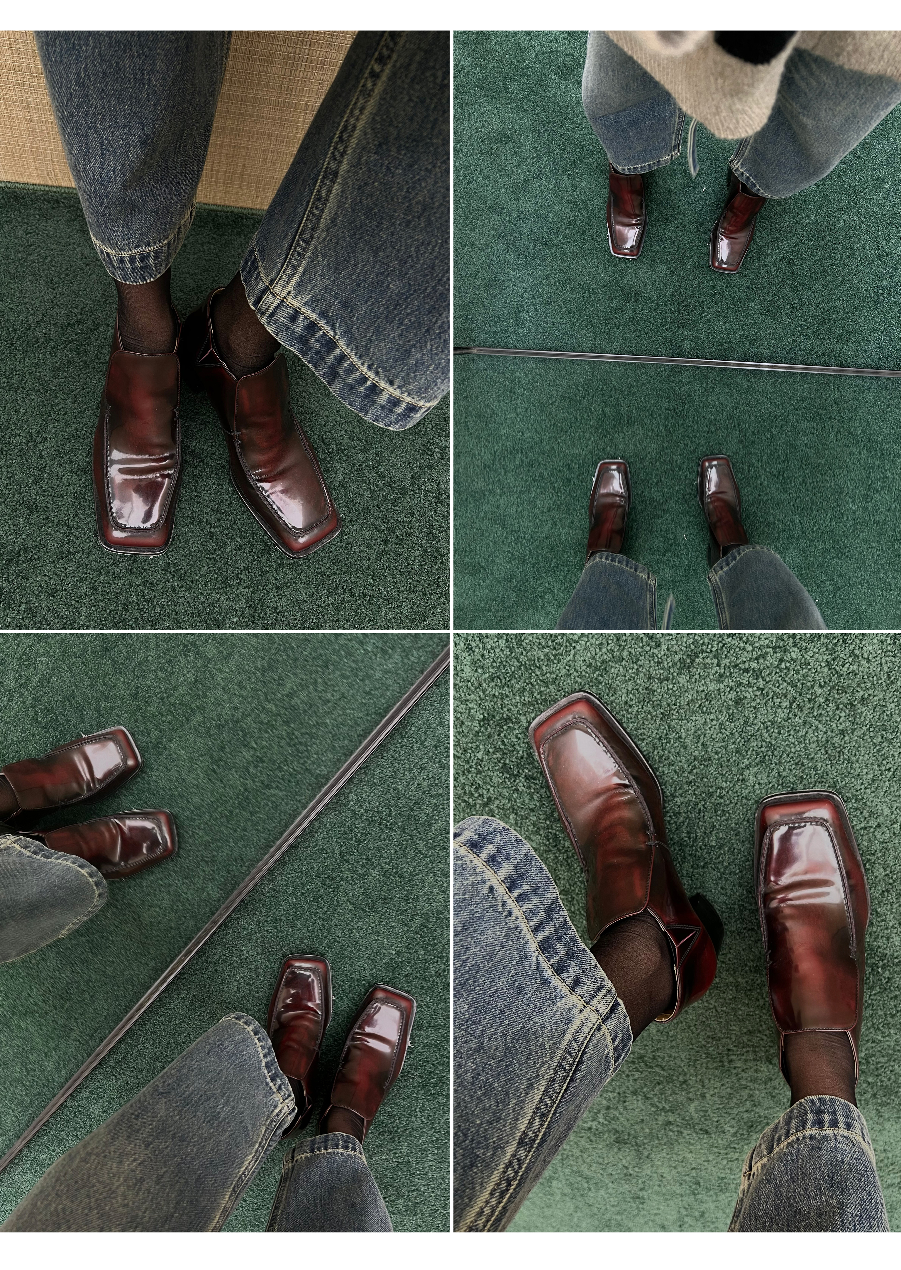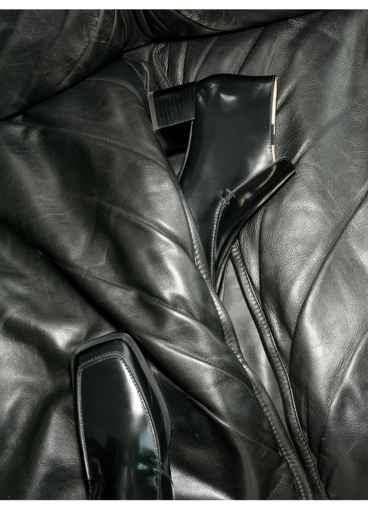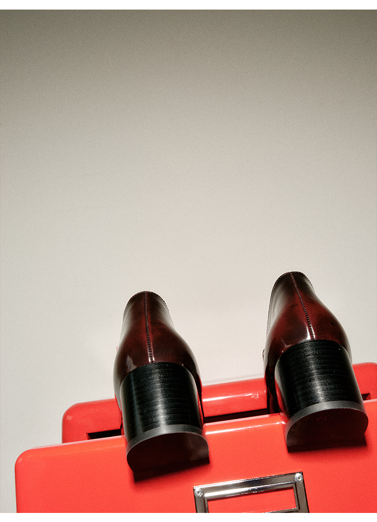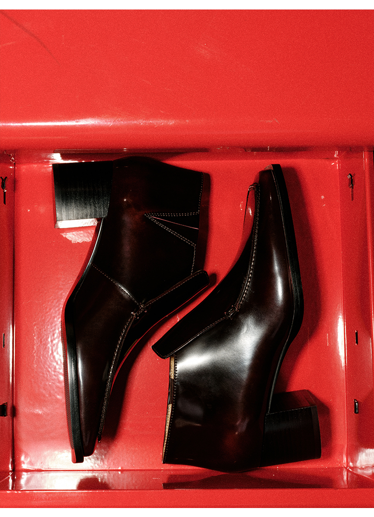 HIDEMI 极简方头都市感方跟粗跟进口雾面亮皮牛皮手工感中跟皮鞋 黑色/复古酒红