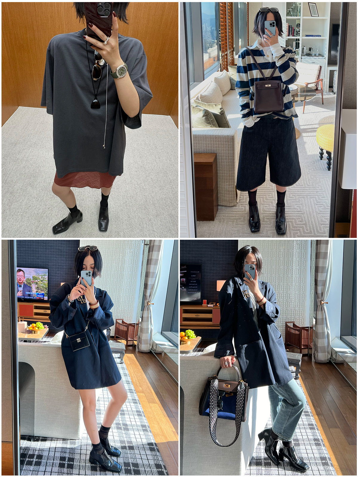 HIDEMI 【董生活同款】云朵系列亲肤柔软薄针织软糯三件套 背心/长袖上衣/百褶半身裙 灰色/巧克力色