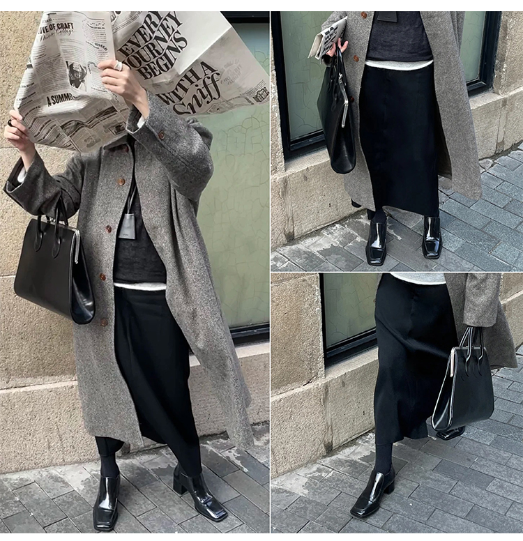 HIDEMI 美利奴羊毛简约设计感茧型套装 半高领毛衣/茧型半身裙