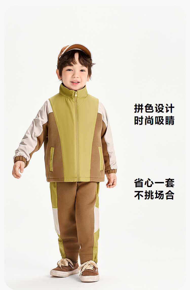 迷你巴拉男童长袖套装龙年宝宝宽松时尚洋气拼接儿童套装