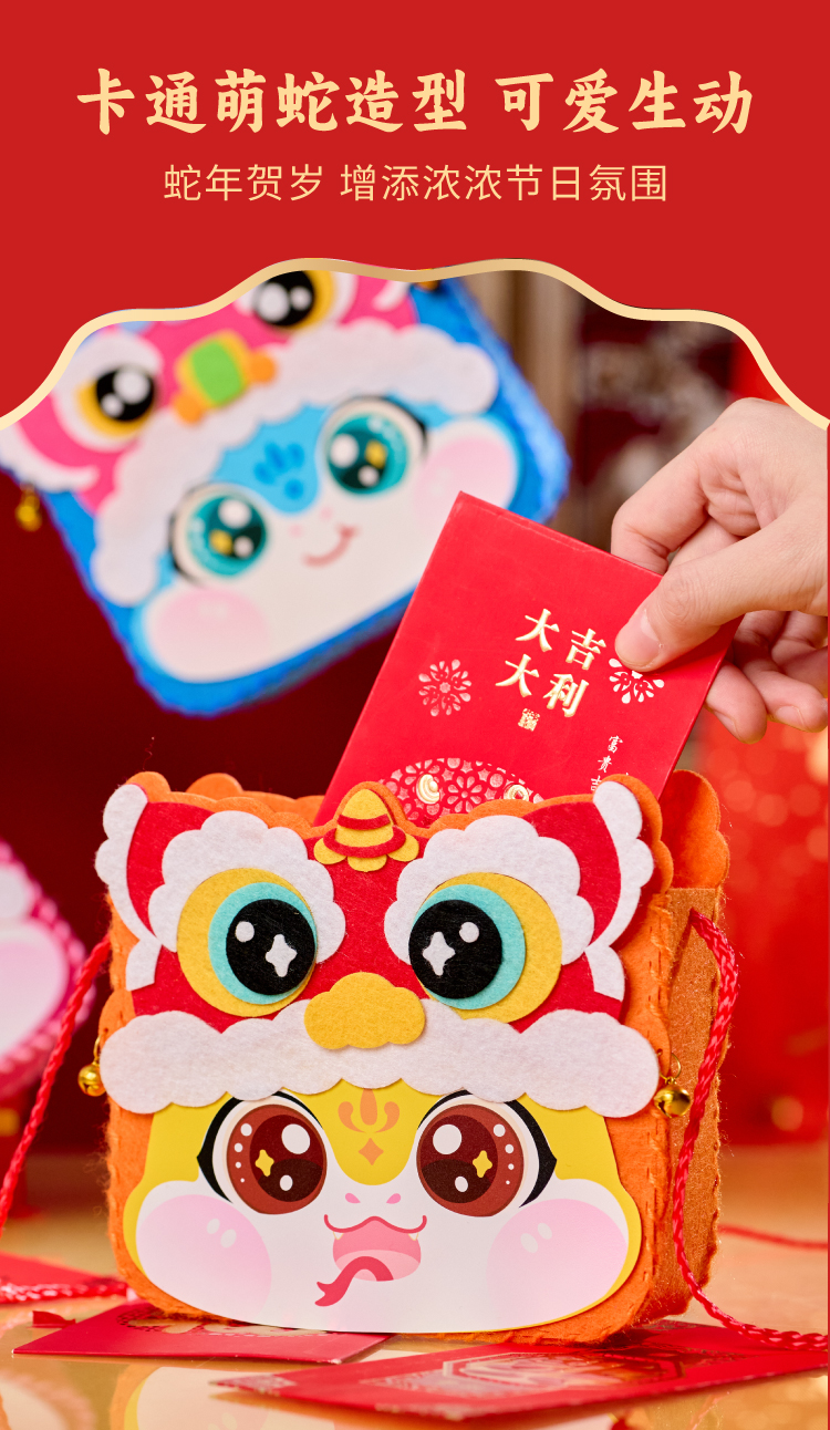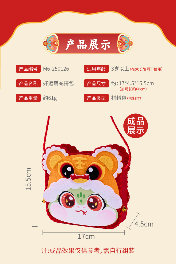 新年蛇年元旦春节好运萌蛇挎包手工diy儿童制作材料包幼儿园包包