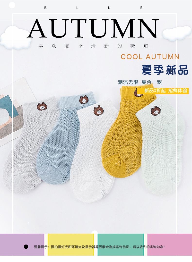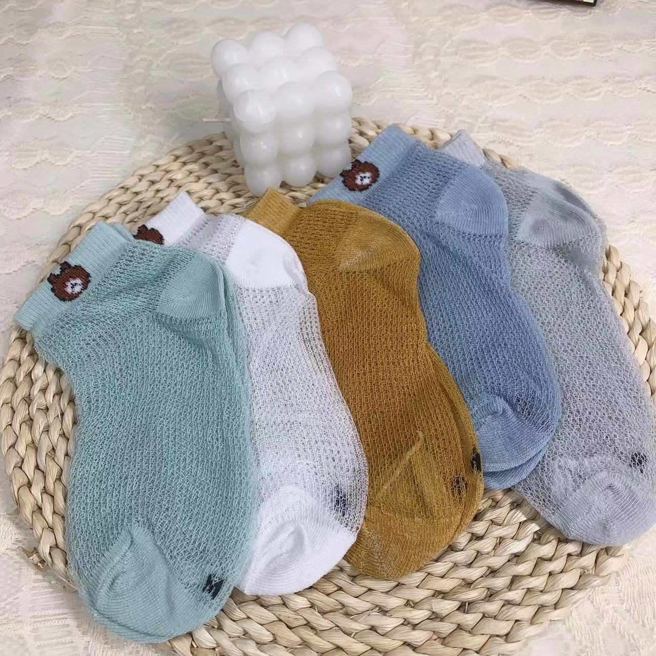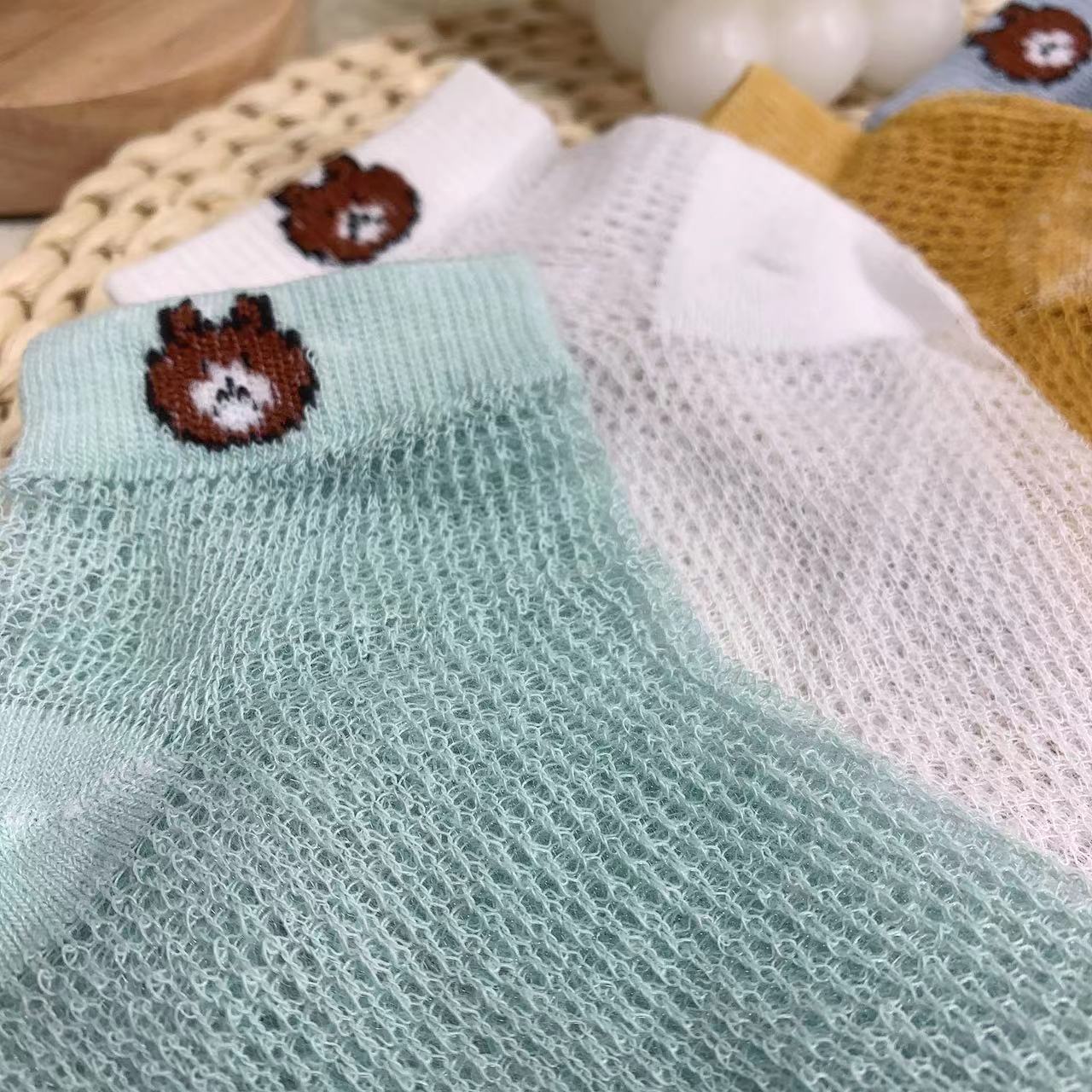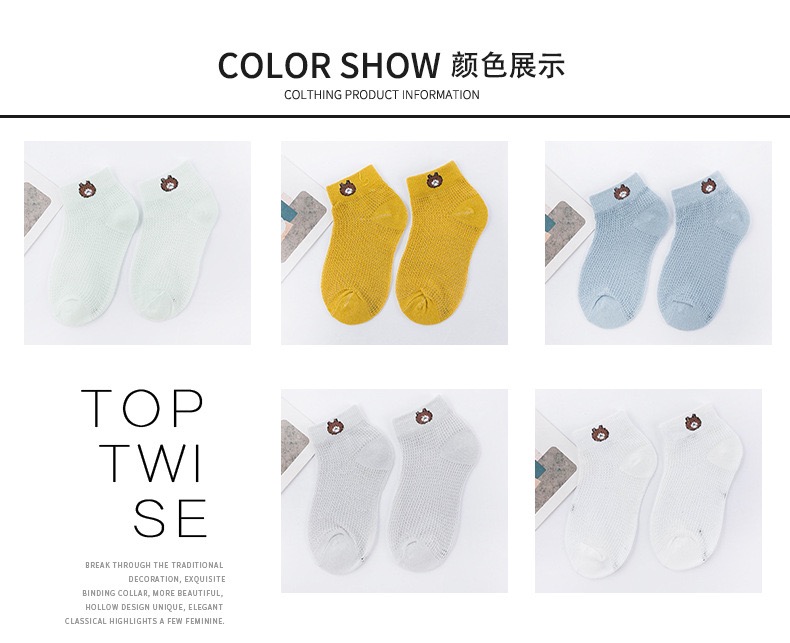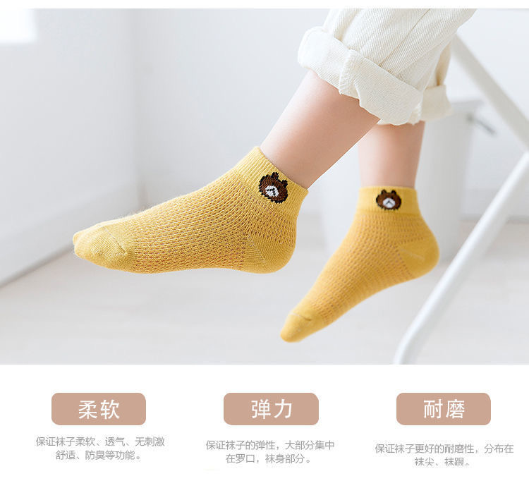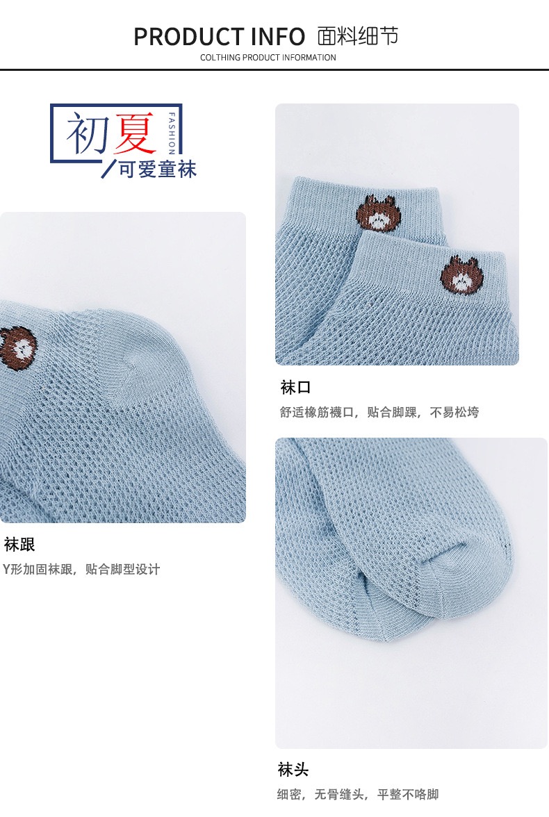 【品名】仪家儿童爆款小熊网眼透气袜10双