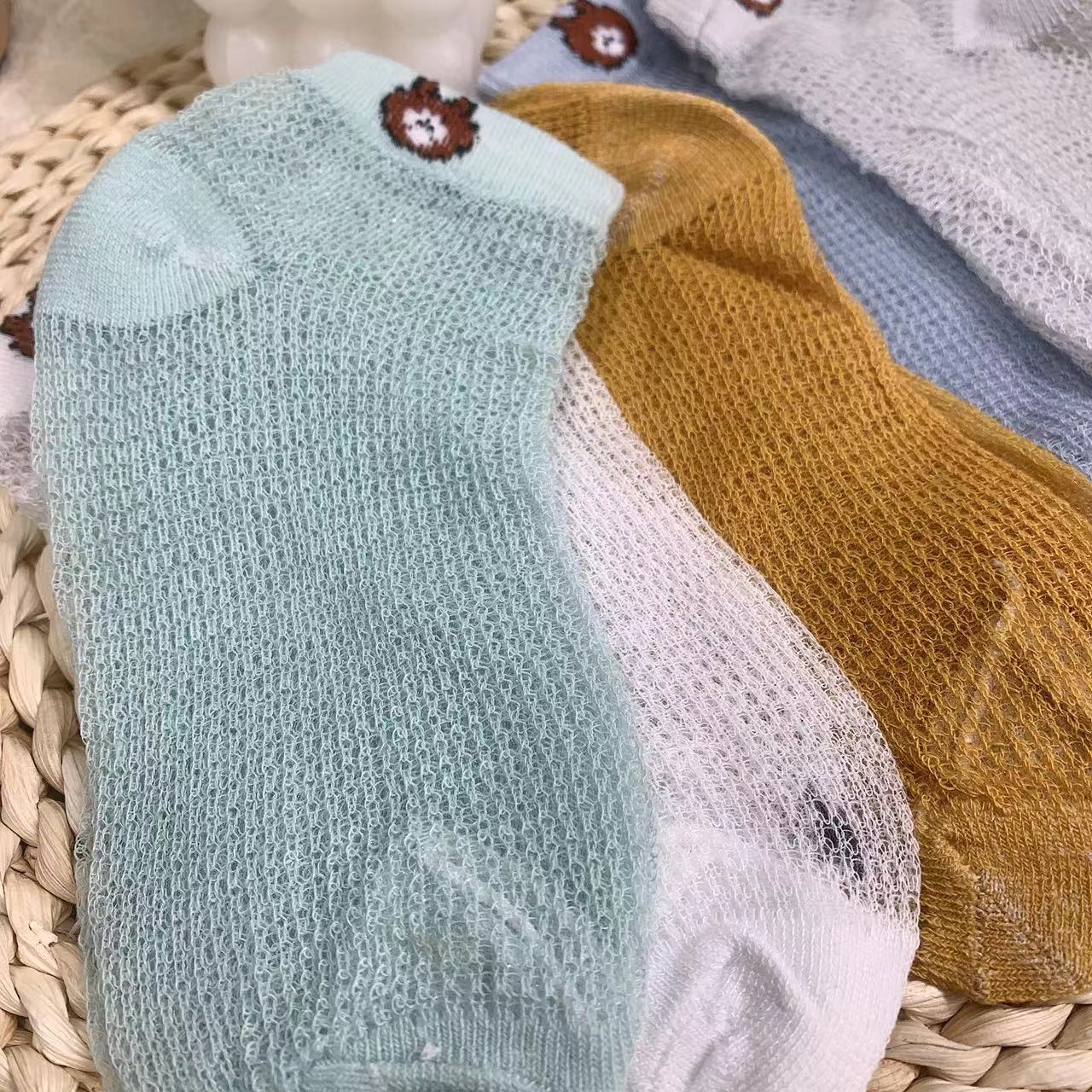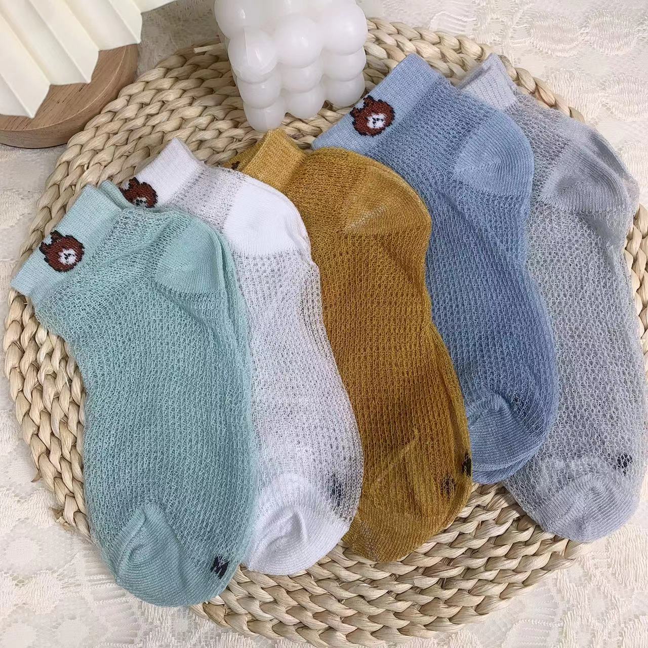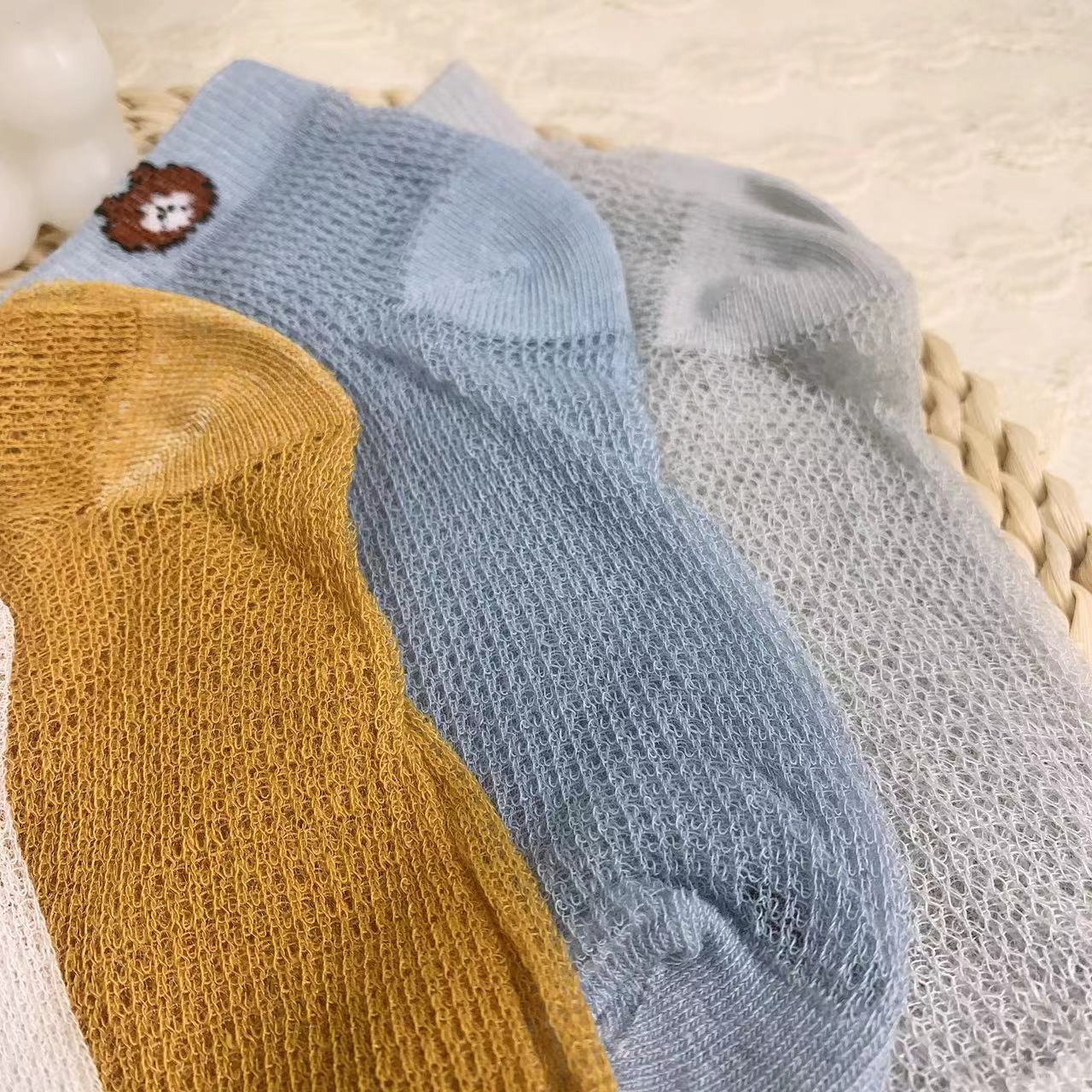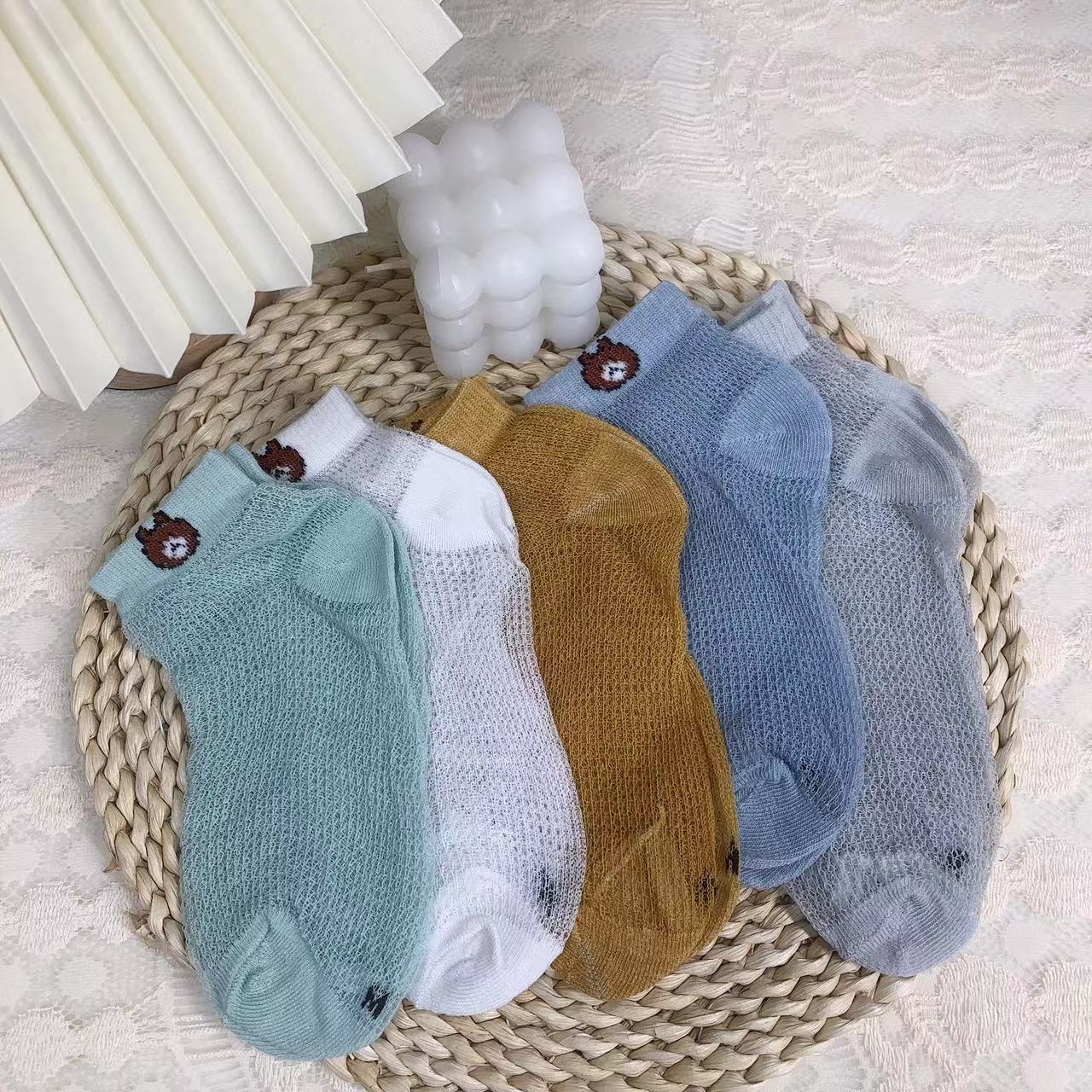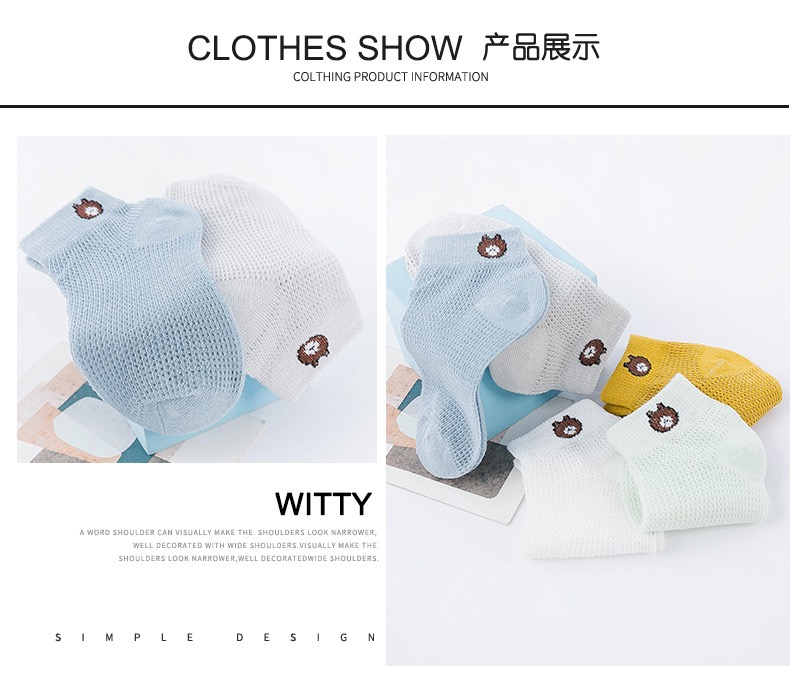 【品名】仪家儿童爆款小熊网眼透气袜10双