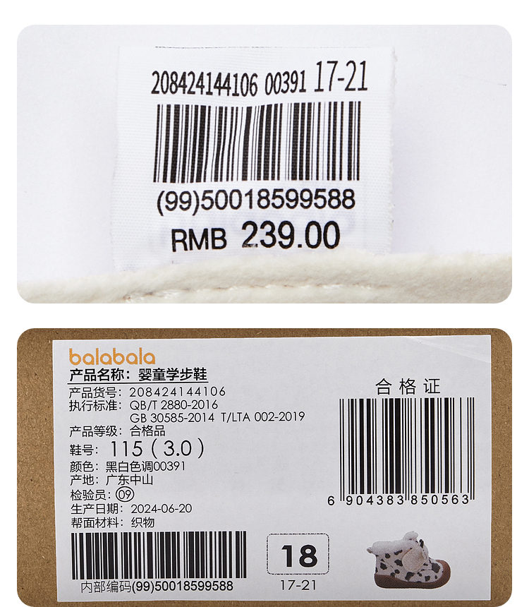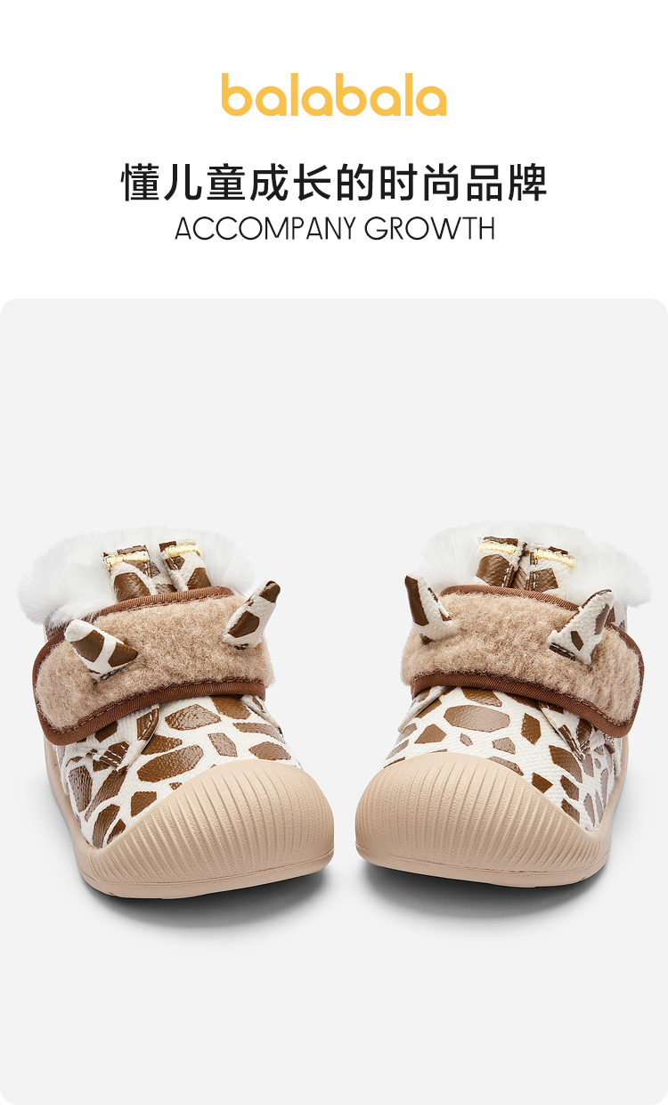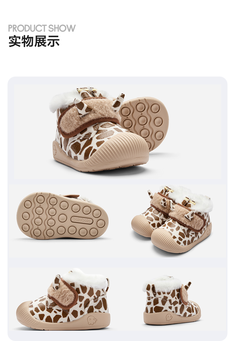 巴拉巴拉宝宝学步鞋男宝女宝加绒厚靴子秋冬新款高帮鞋子防滑
