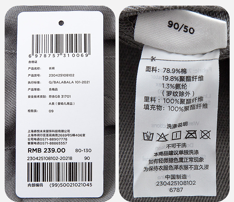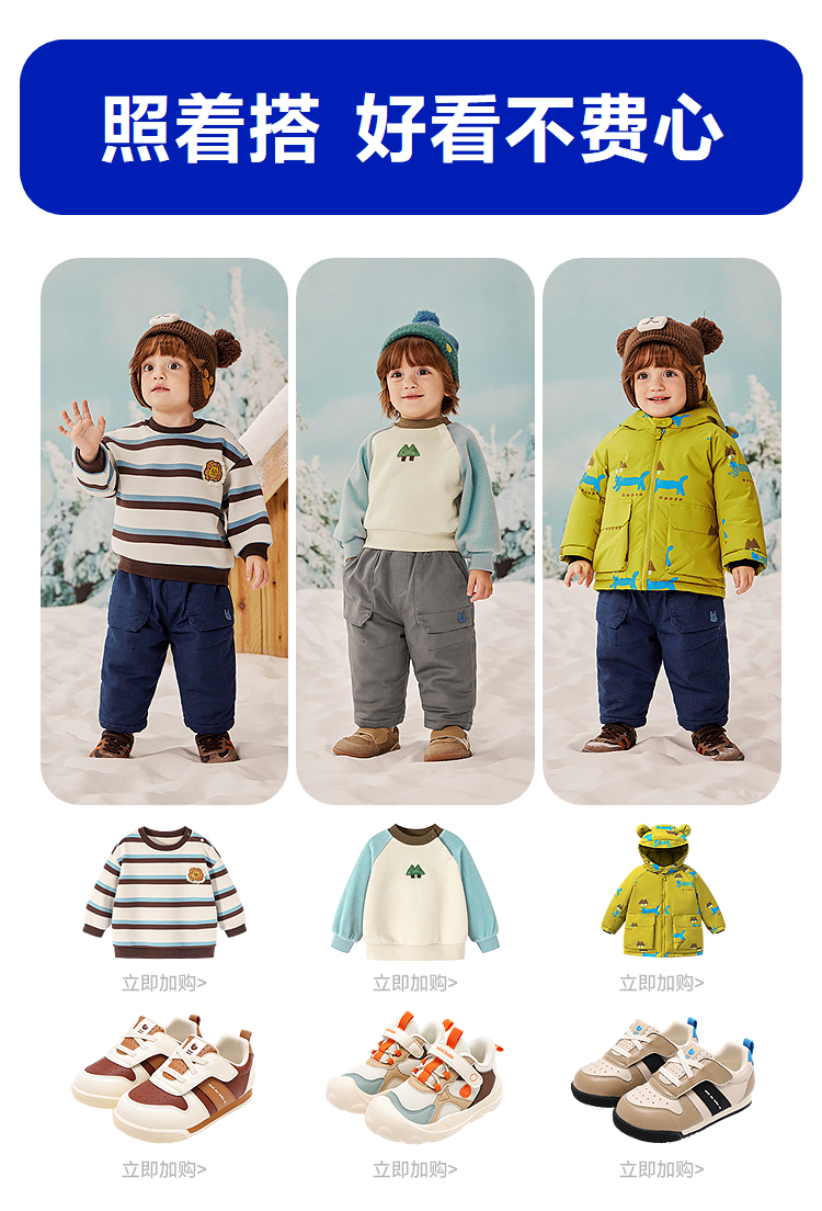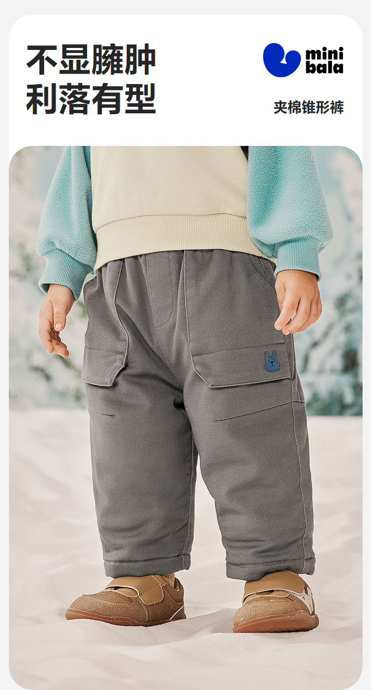 【夹棉】迷你巴拉男童宝宝长裤亲肤保暖内里填充棉舒适裤子冬新款