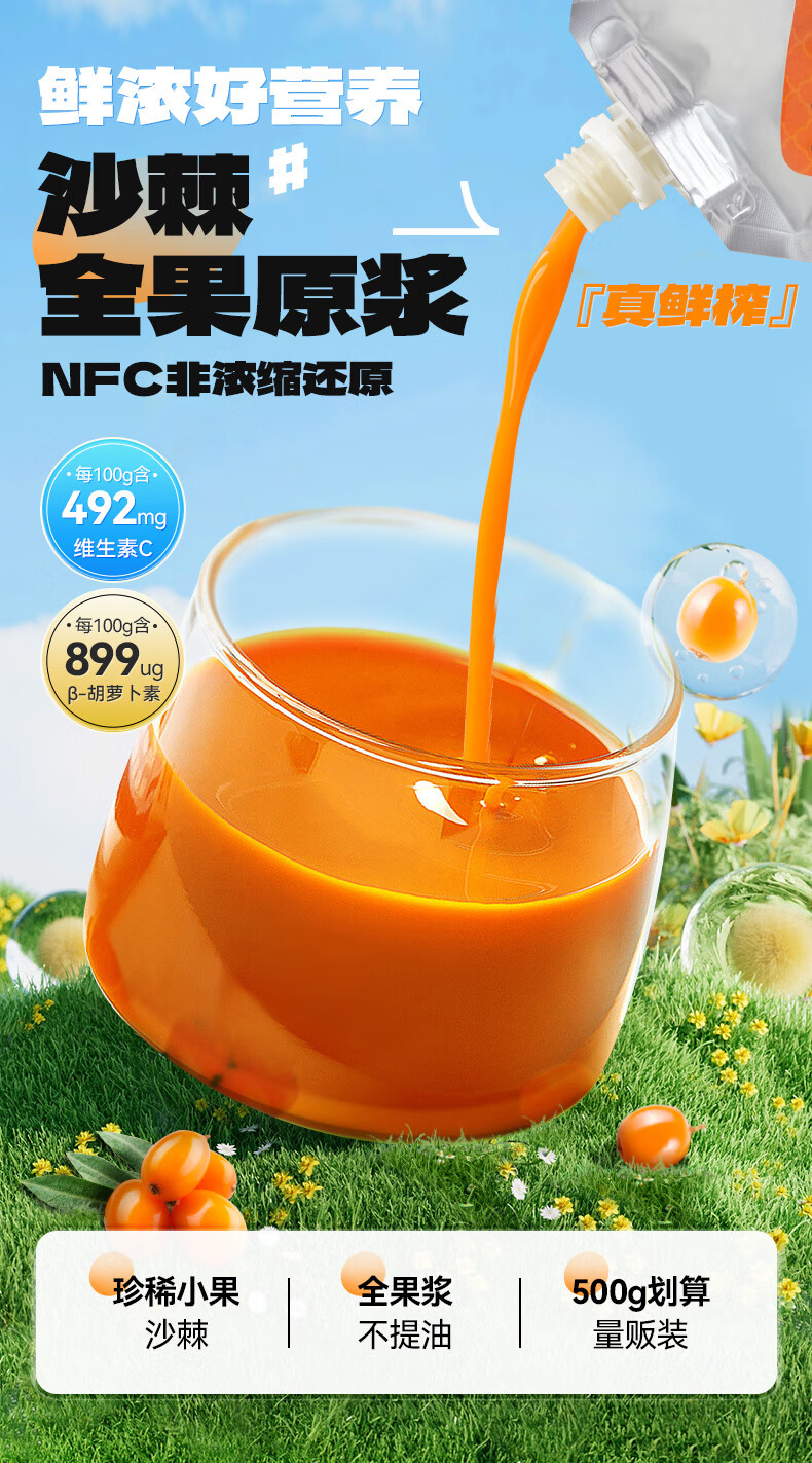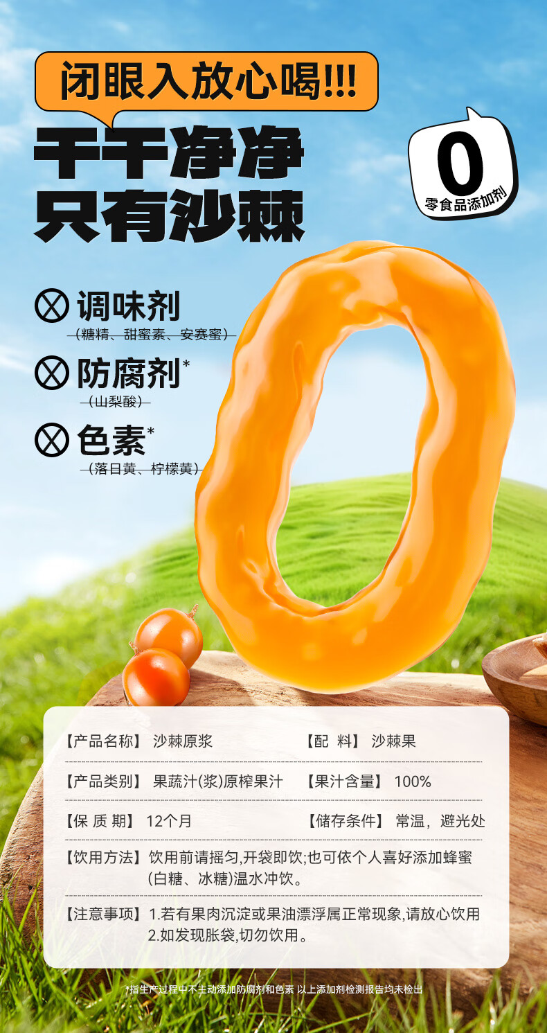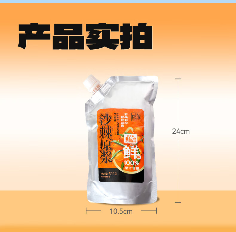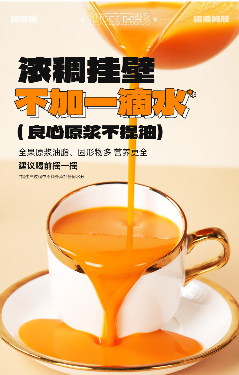【沙棘原浆 500ml*4,大袋实惠更划算】福牌沙棘原浆500ml*4袋