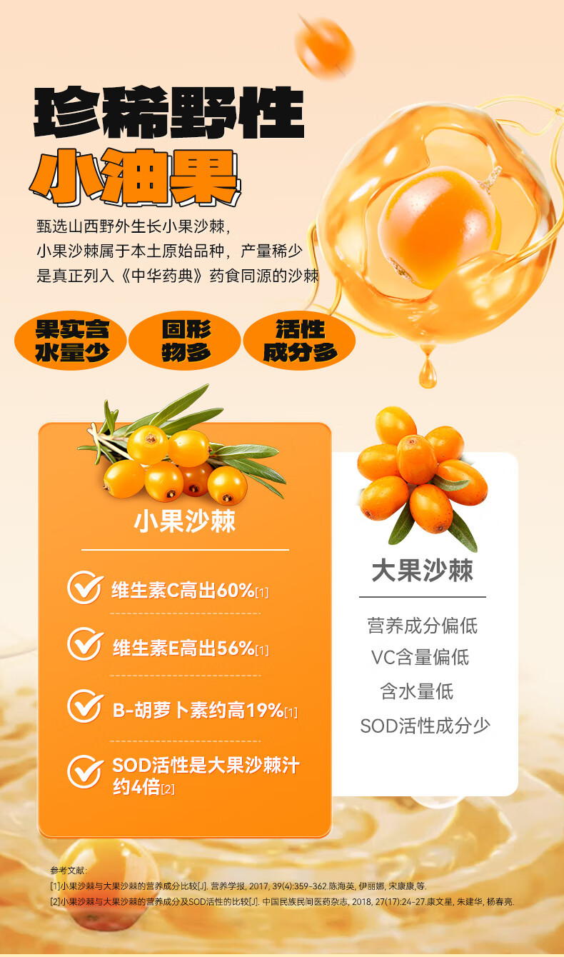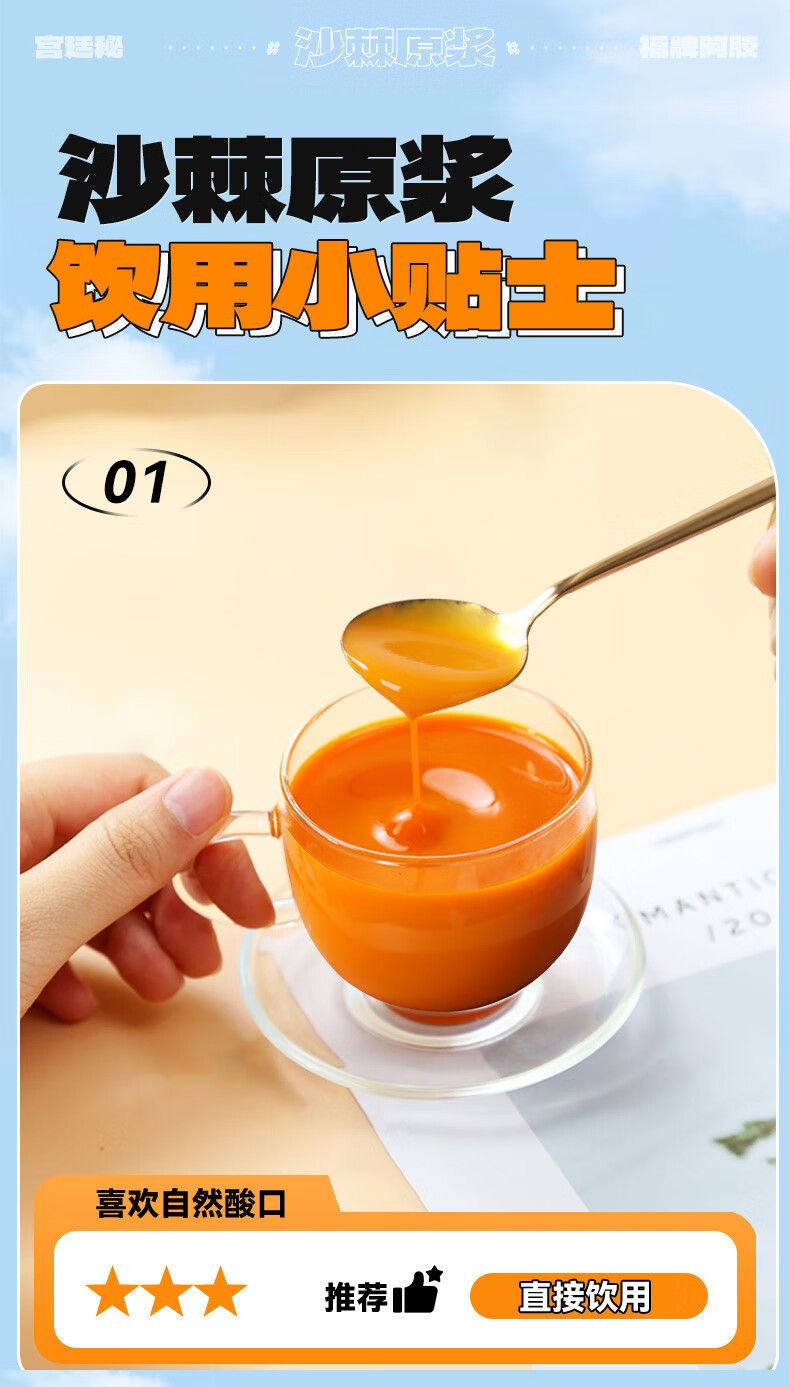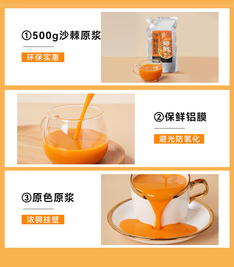 【沙棘原浆 500ml*4,大袋实惠更划算】福牌沙棘原浆500ml*4袋