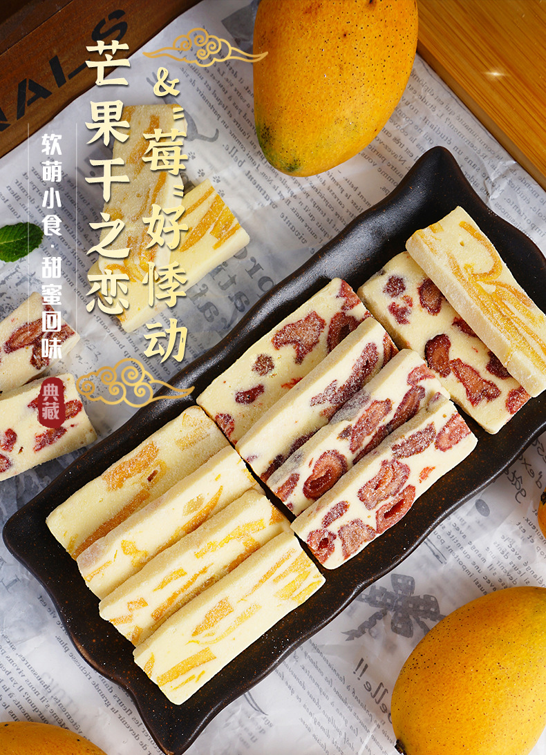 【手工烤制!芒果干奶糕草莓之恋】巴旦木牛轧奶芙糕点 新式糕点老人小孩都爱吃 营养健康 下午茶必备Y