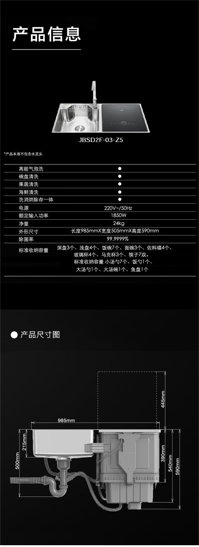 方太洗碗机(FOTILE)(510383)JBSD2F-03-Z5 新品水槽洗碗机 嵌入式全净透空化全自动三合一家用水槽洗碗洗碗机