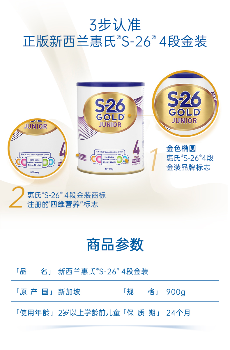 HNMG 新西兰惠氏奶粉 S26金装 4段900g (新加坡版本)