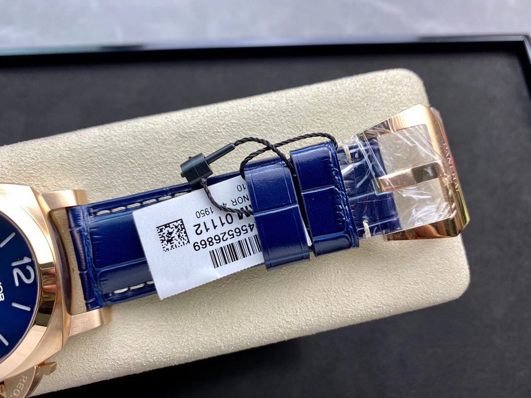 VS 2020 新品:44MM“骚蓝”庐米诺红金腕表PAM 1112。金表无数,唯有沛 Na 海红金表浓郁深厚,特征性设计,视觉上独特,形态上扎实,戴着过瘾!买红金系列的那必定是真爱粉无疑!