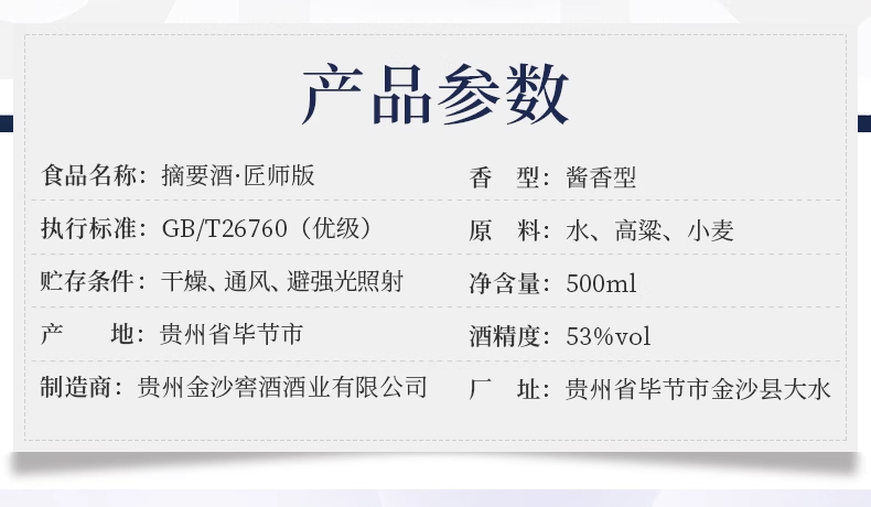 摘要酒匠师版53度 酱香型白酒500mL 多规格任选【包邮直发】