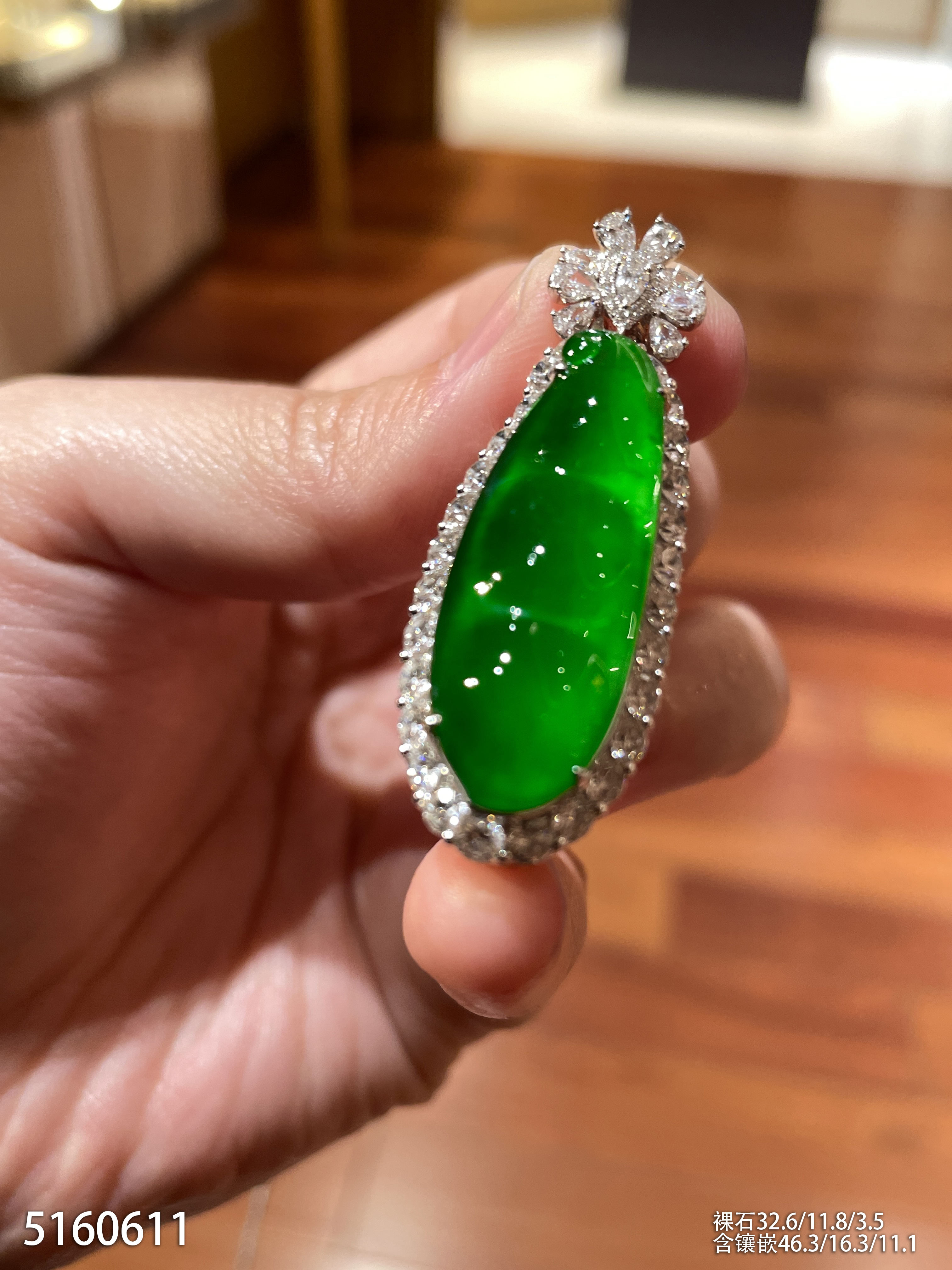 120-1232908,玻璃种木那艳绿蛋面戒指,具体价格微信咨询