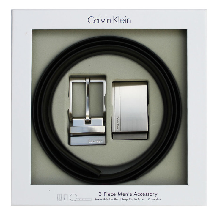 CALVIN KLEIN/CK卡文克莱男式均码黑/棕色3.5CM宽双面双头可调节皮带礼盒 腰带 74384-BBWJPY带授权招加盟代理