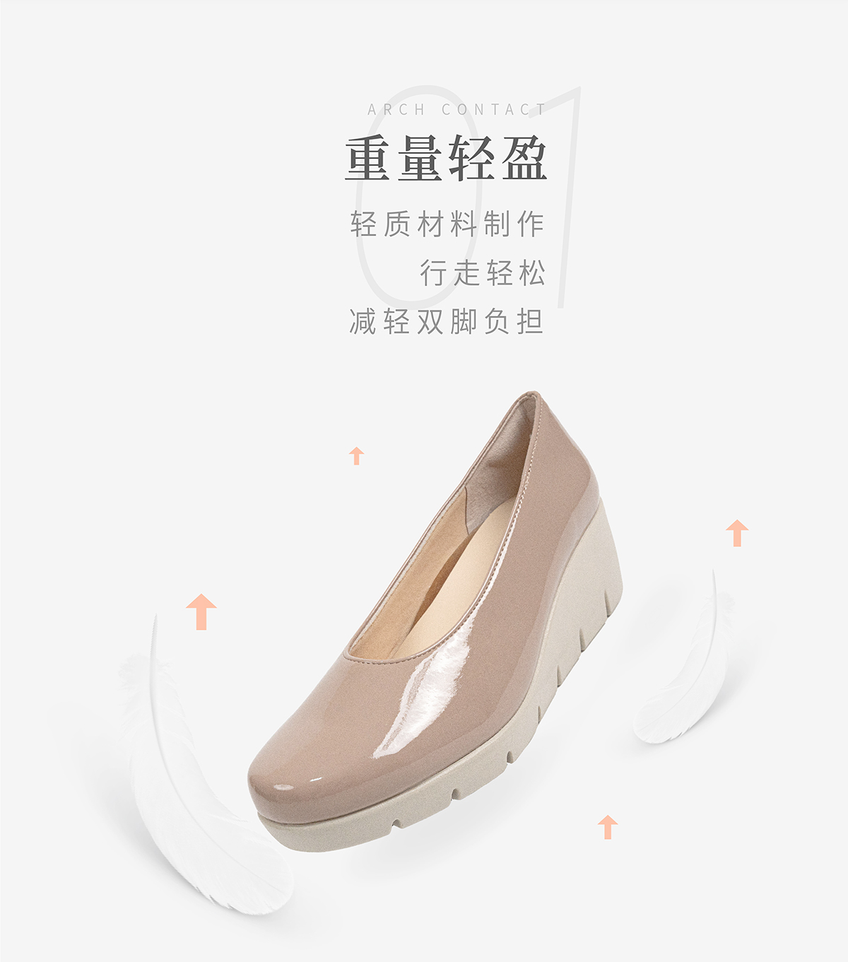ARCHCONTACT安启美奈亮面坡跟百搭单鞋45601
