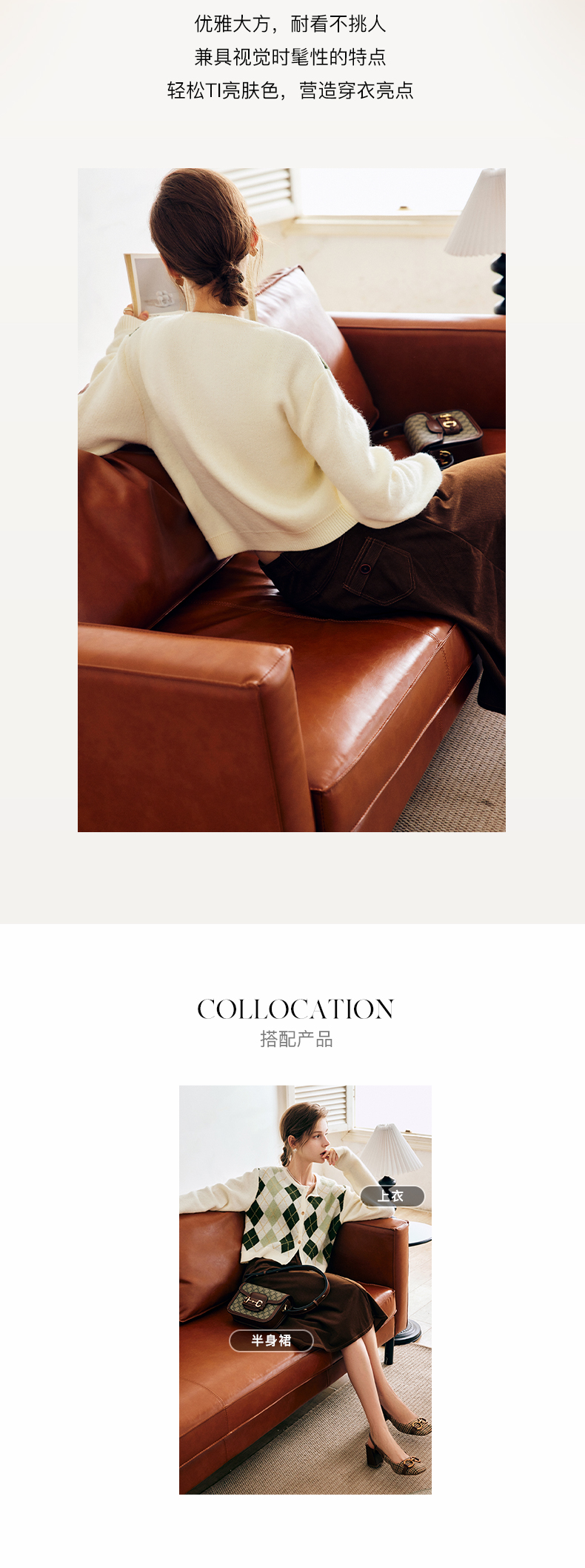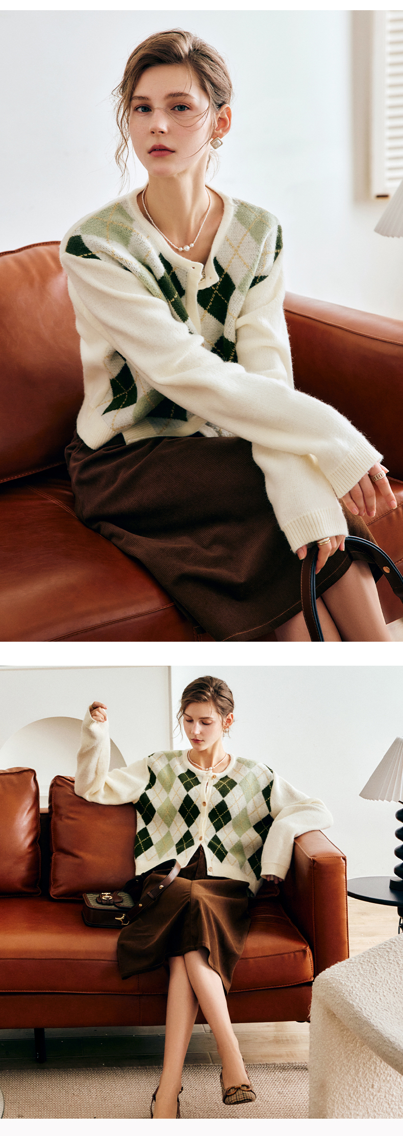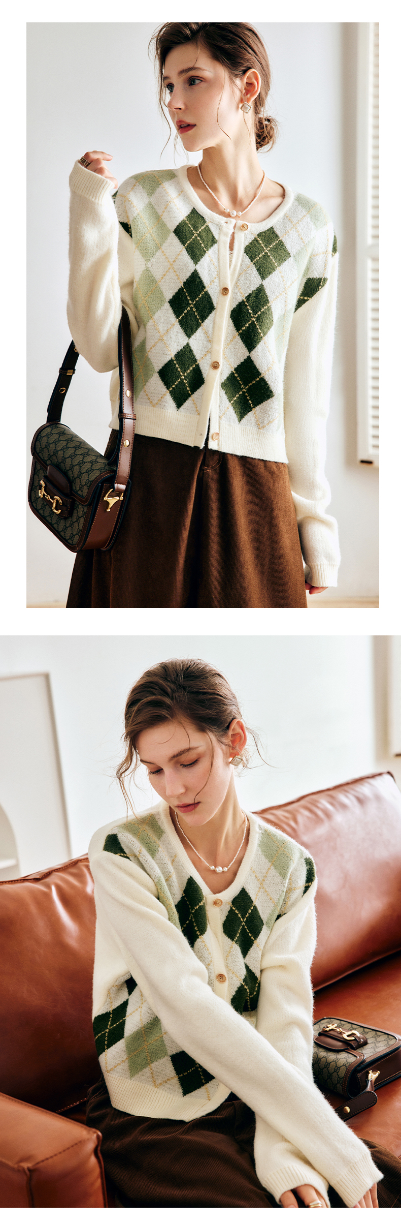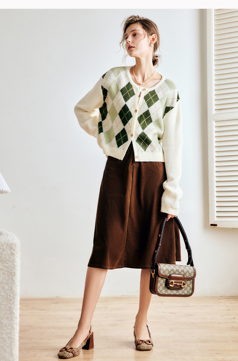 OLrain欧芮儿法式菱格针织开衫毛衣女早秋2022年新款复古撞色上衣