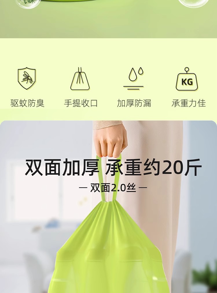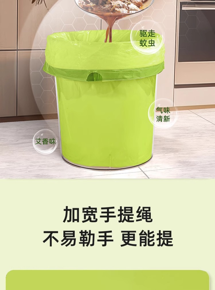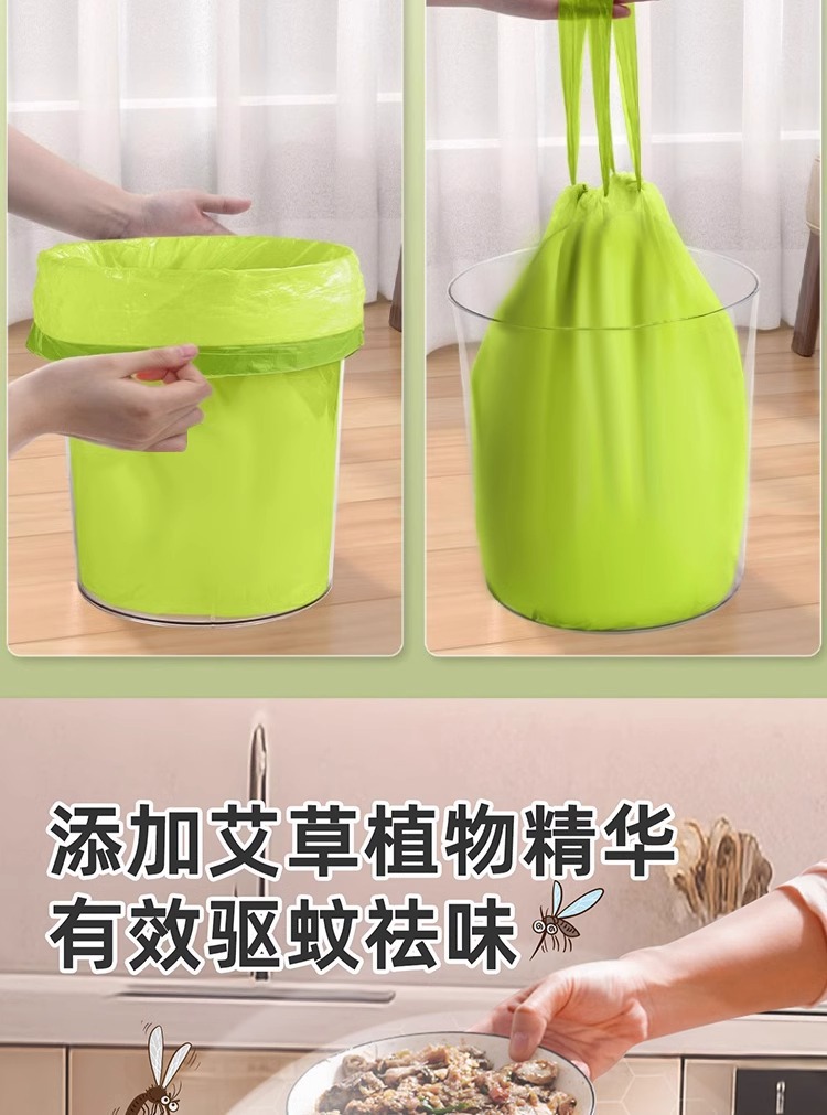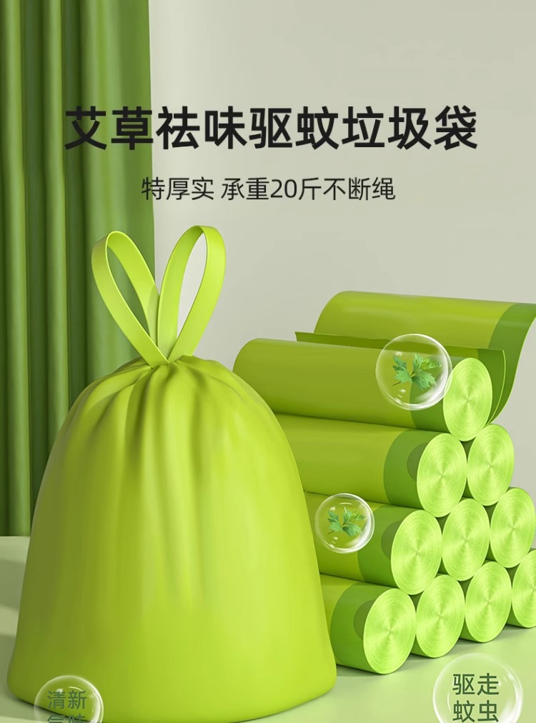 「300只!艾草驱蚊垃圾袋」抽绳式居家日用厨房大卷加厚清新高颜值垃圾驱虫清洁工具袋