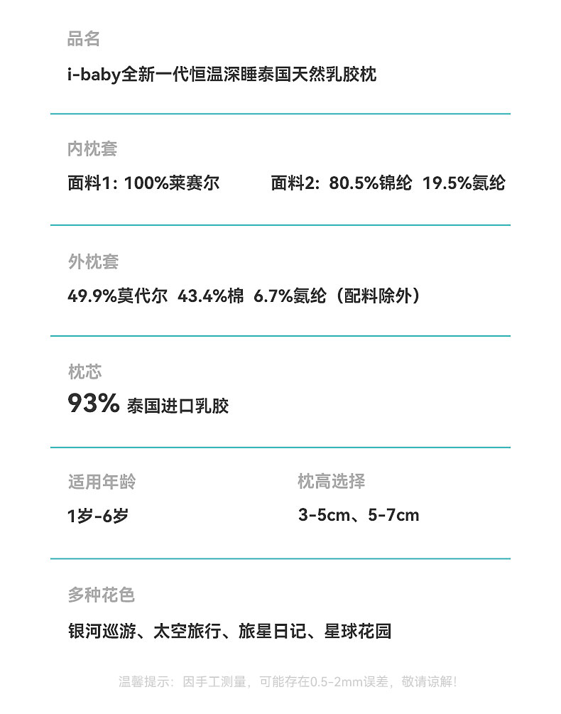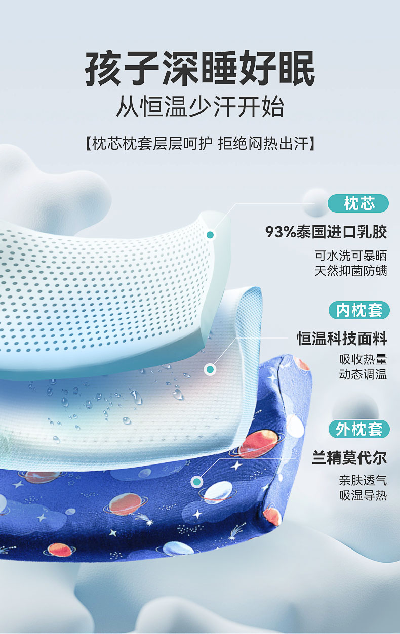 i-baby恒温乳胶枕定型枕婴儿枕头1岁3岁6岁以上宝宝儿童枕头透气