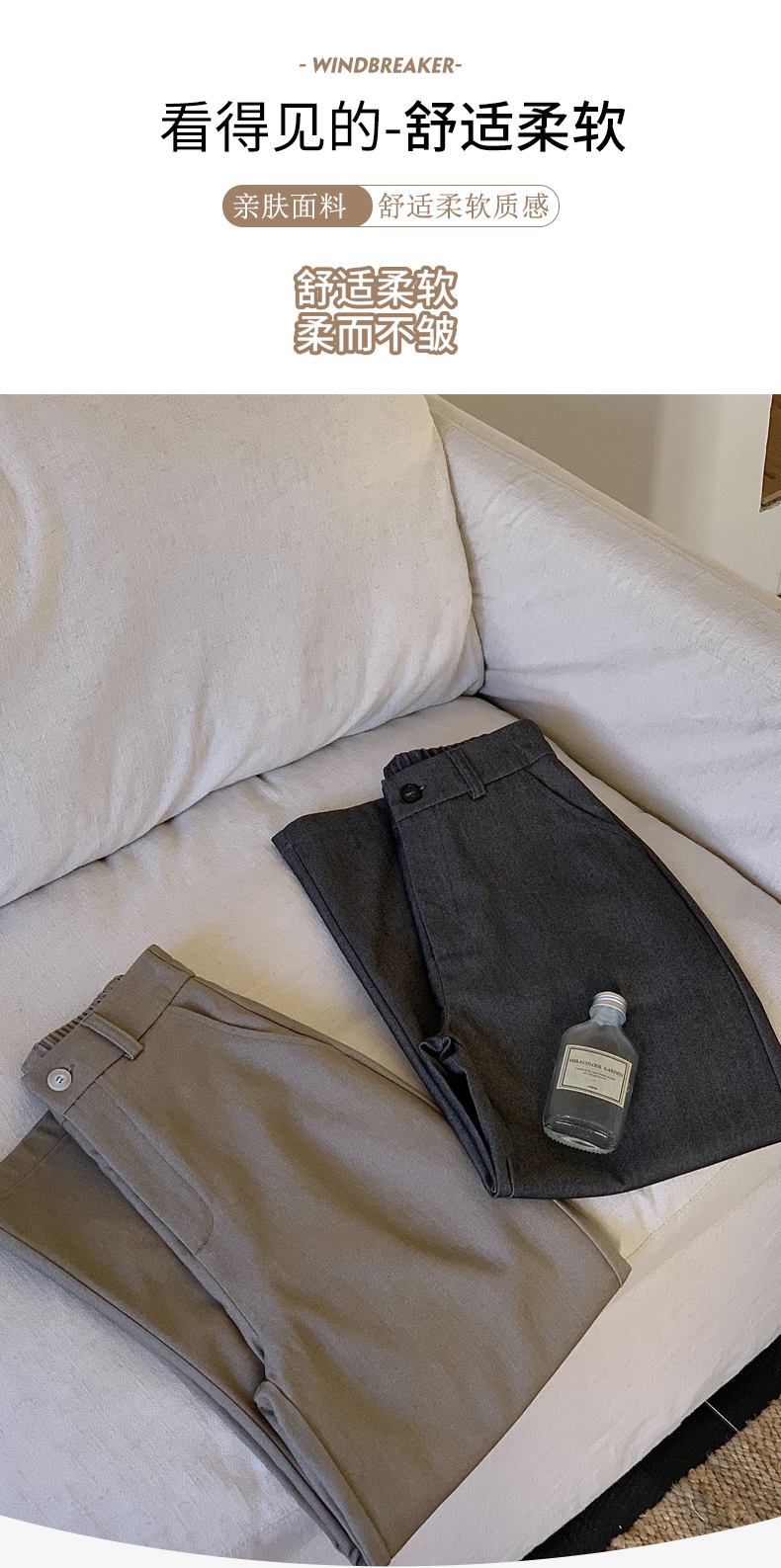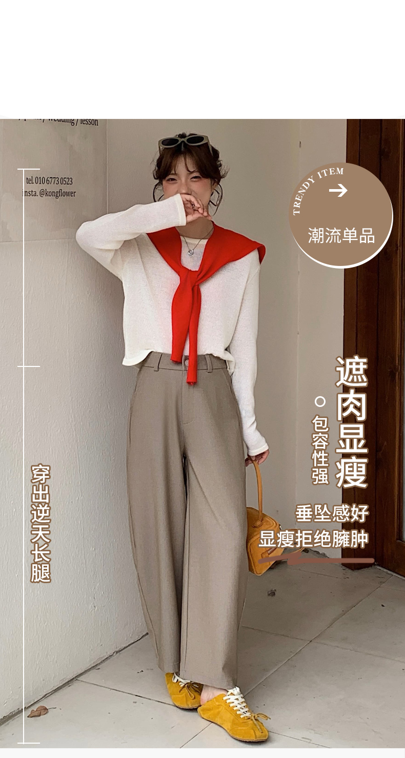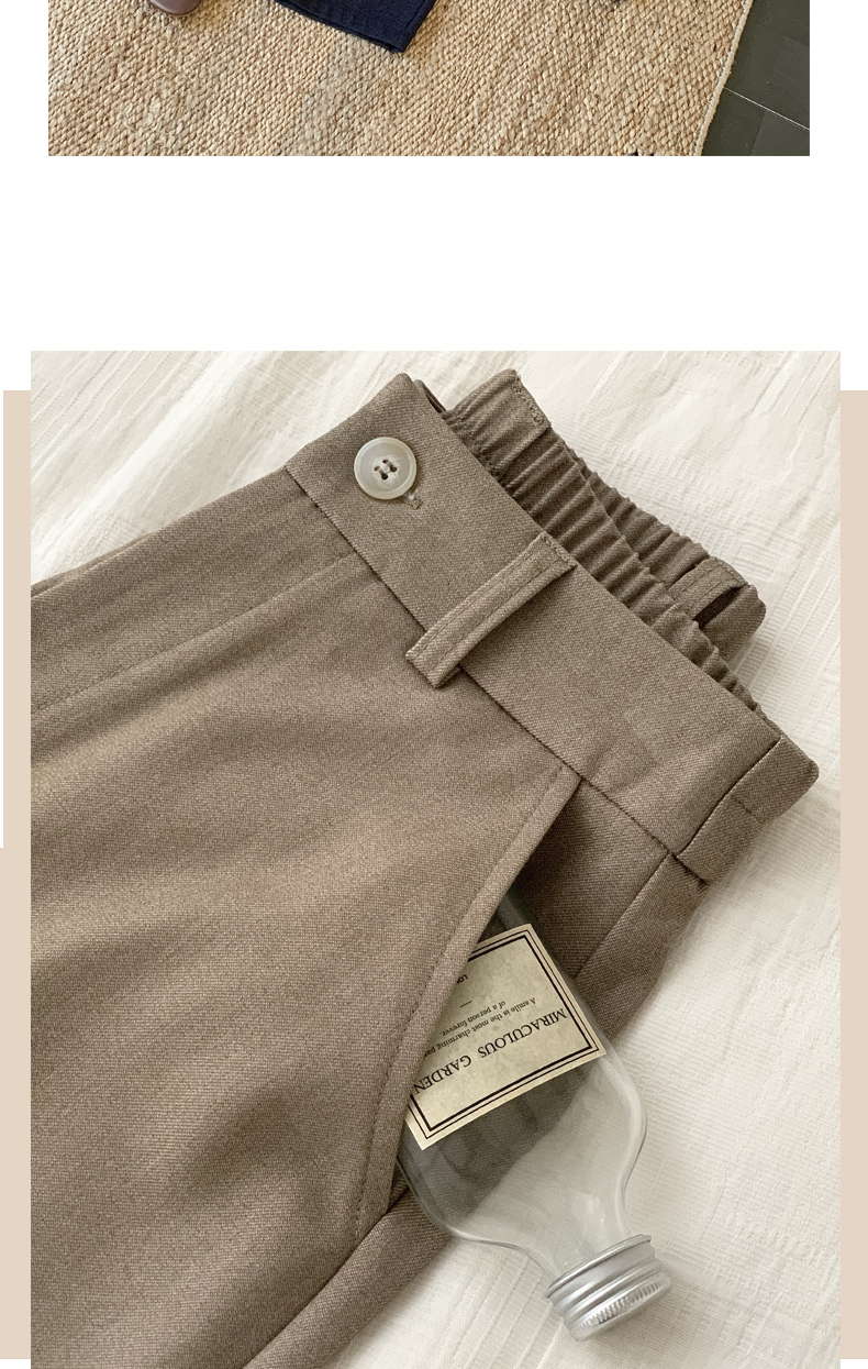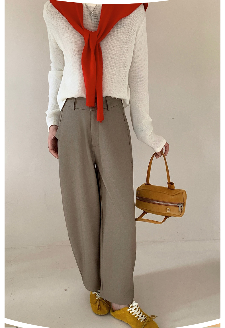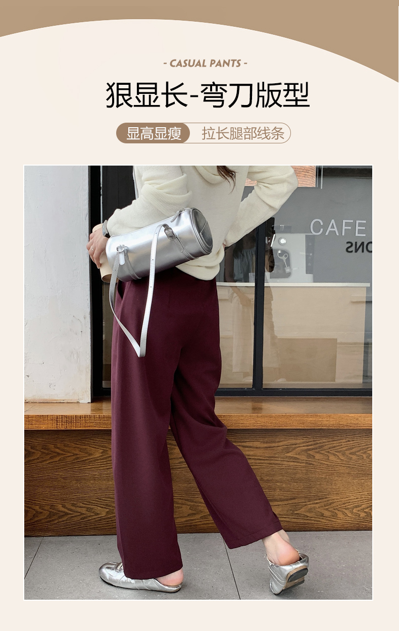 骆柒柒牛仔棉弯刀九分拉链裤 牛仔梭织面料柔软垂顺 弯刀九分裤型修饰各种身材 半松紧腰穿着更舒适 时尚百搭