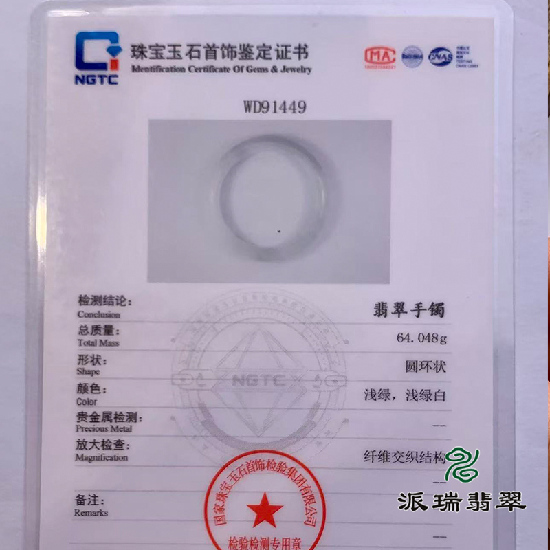 派瑞翡翠 翡翠手镯 糯种 浅绿