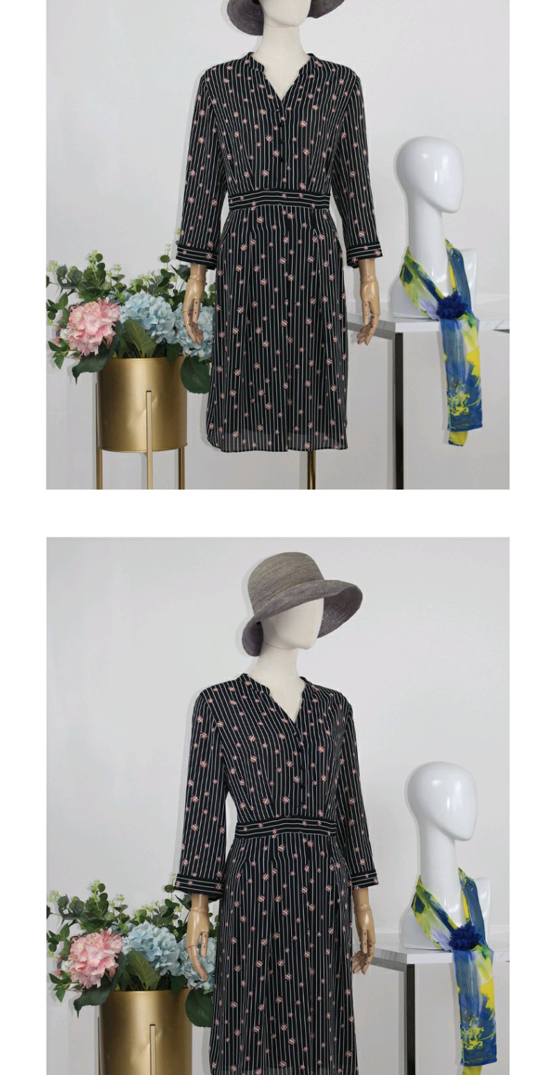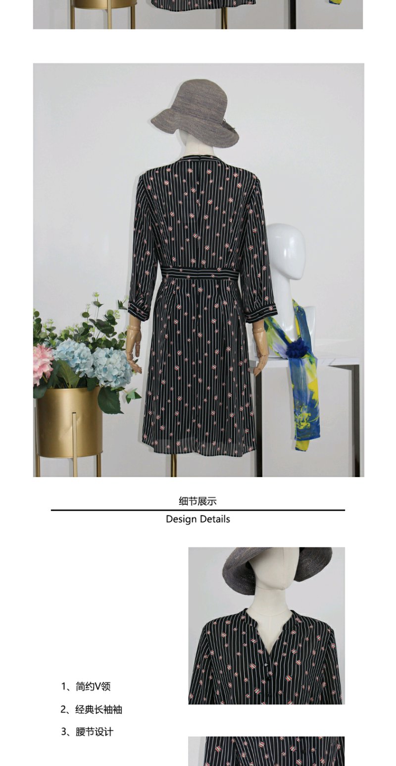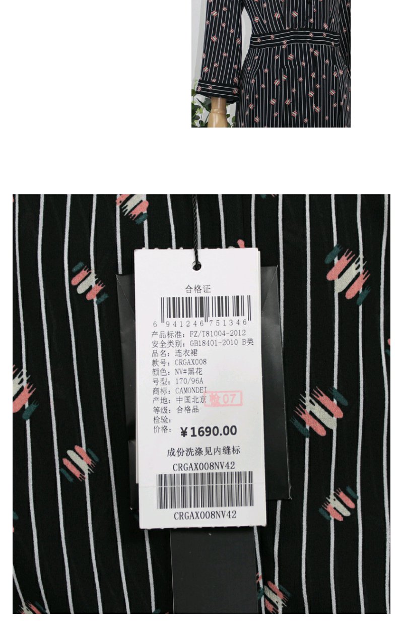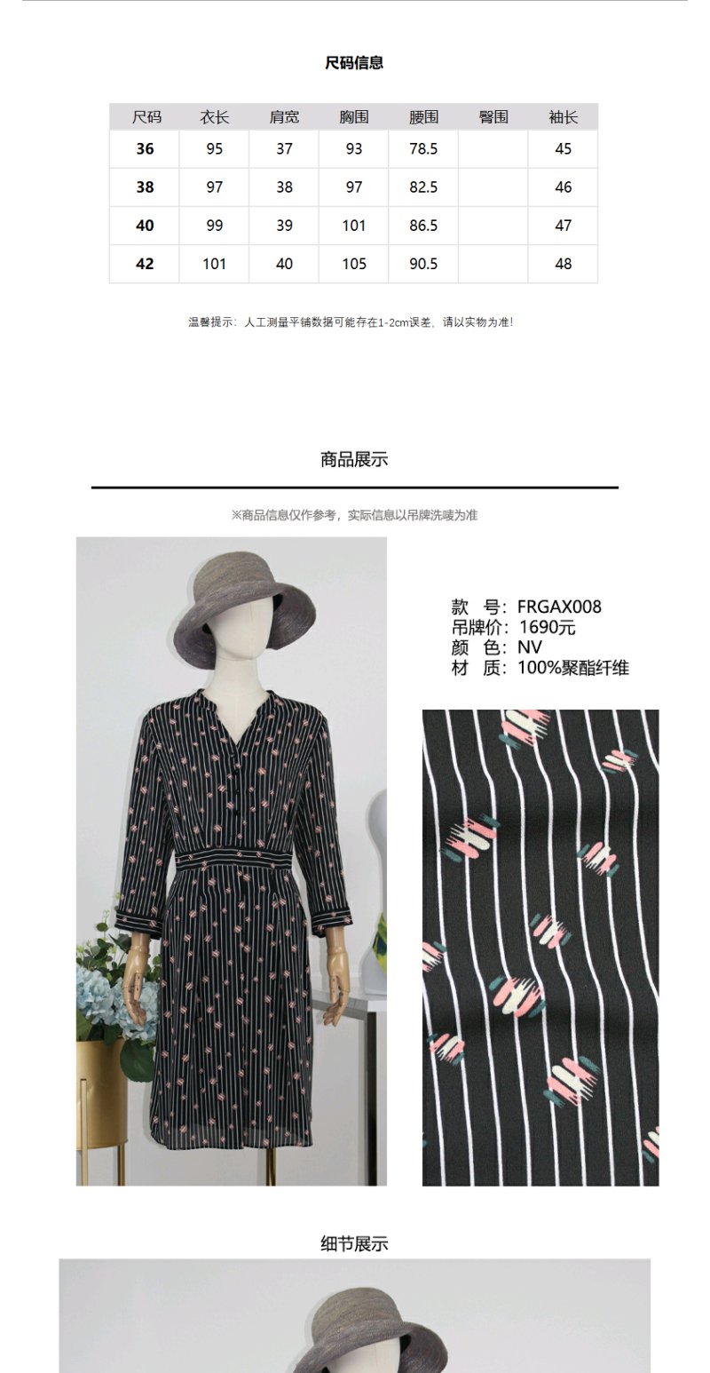 FOCALS福柯斯秋季清新条纹印花七分袖修身印花连衣裙FRGAX008NV