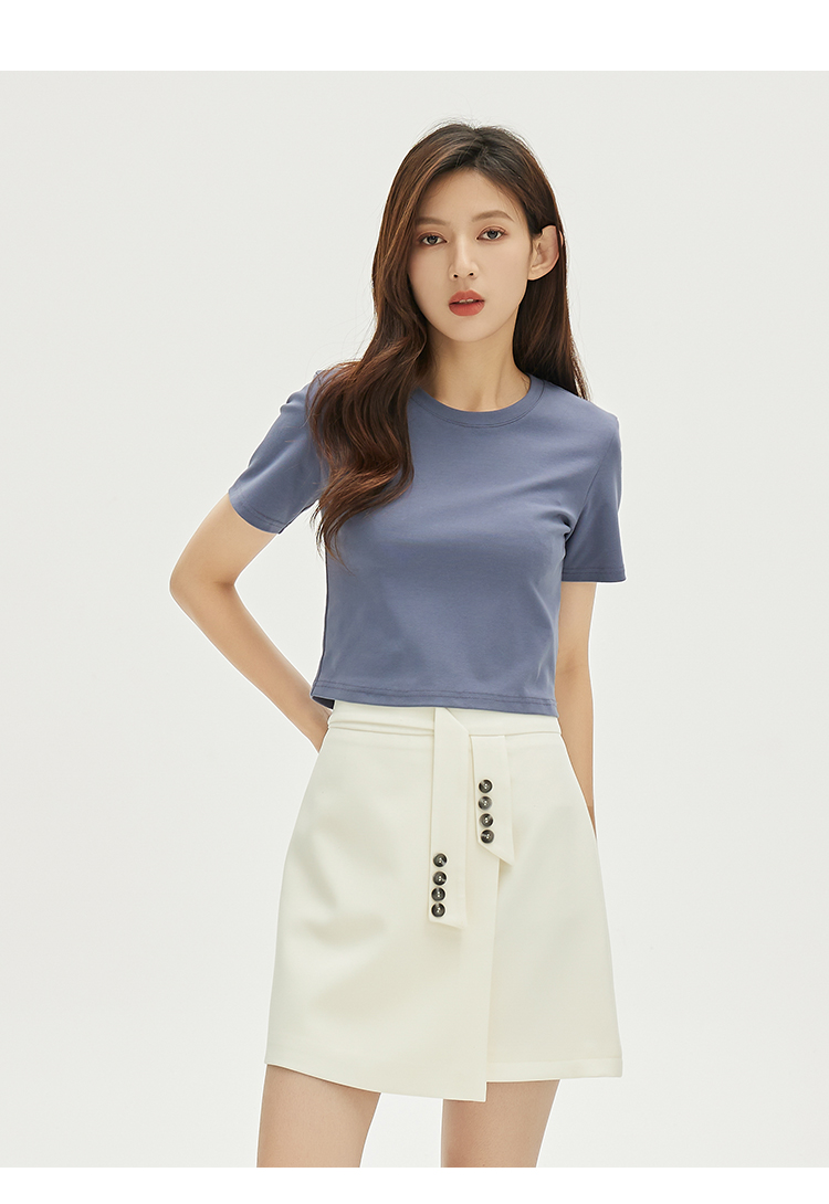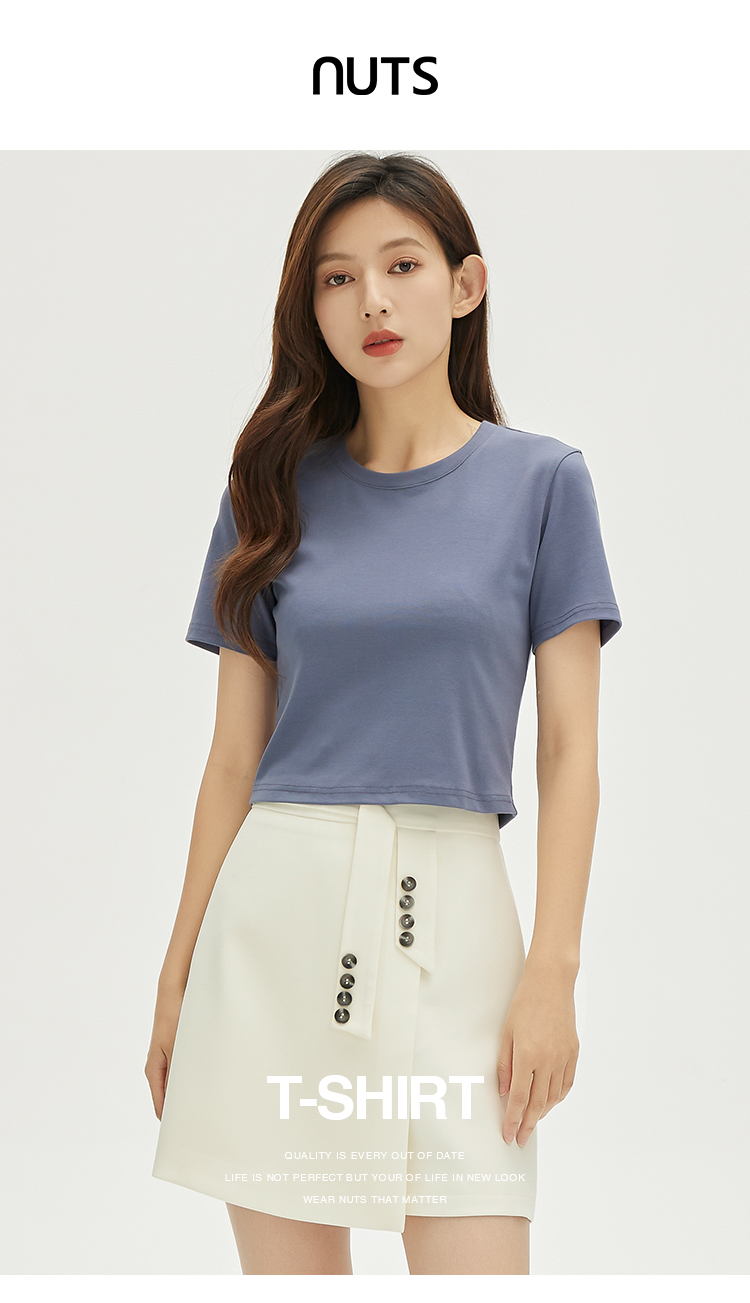 NUTS秋季新款时尚气质简约高级感修身显瘦短袖T恤女332021232