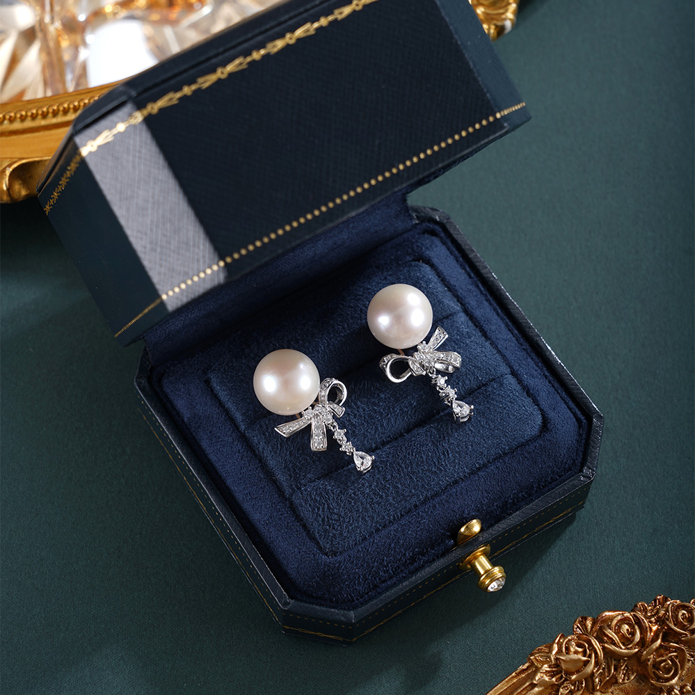 子佩集【纯白情结】银S925珍珠惜王妃耳钉【MLEH033】12mm珠蝴蝶结2601