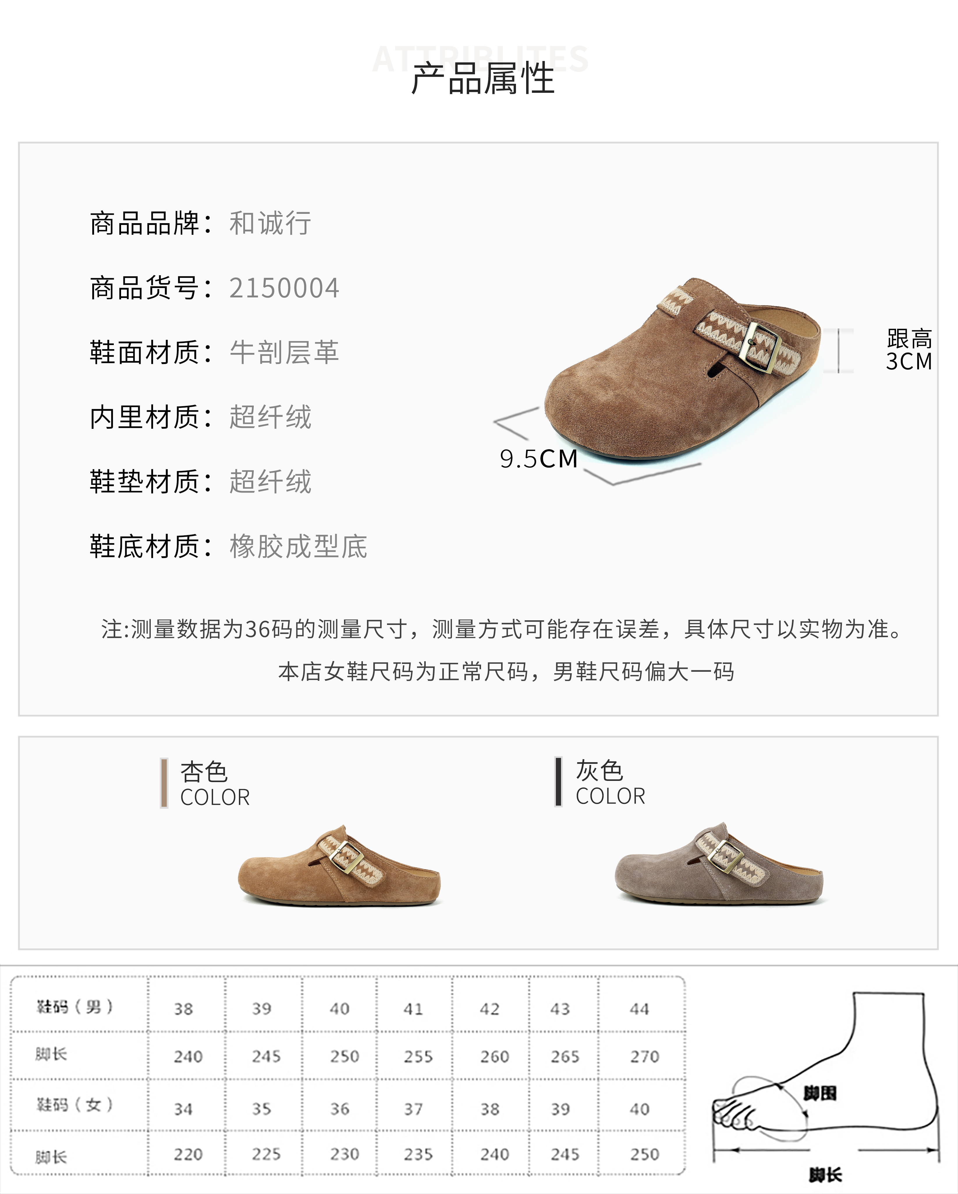 和诚行2026春季新款复古包头可外穿休闲勃肯拖鞋2150004