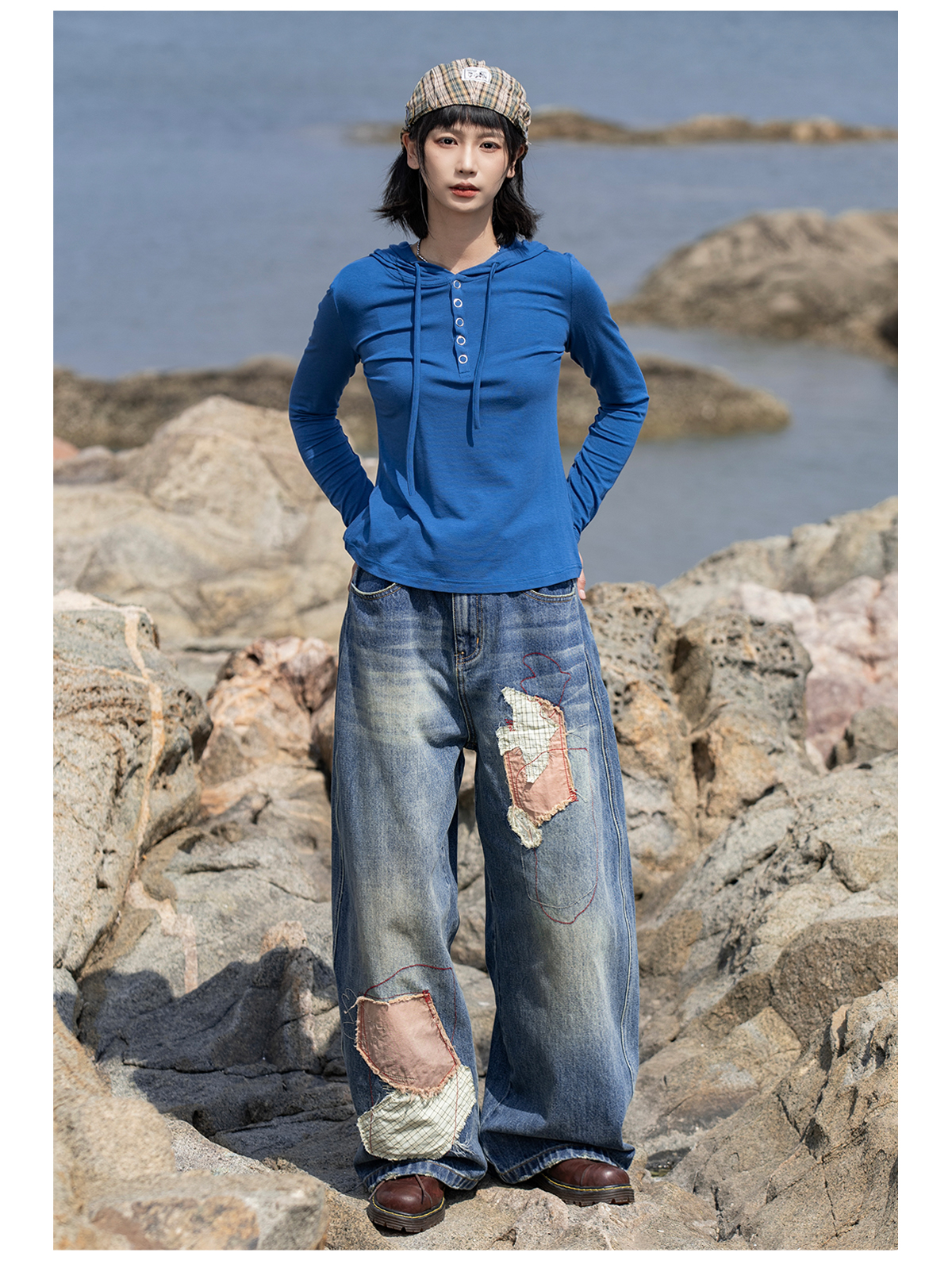 早乙女惠子saotome/STMKZ13398/水洗飞乌贴布绣牛仔裤