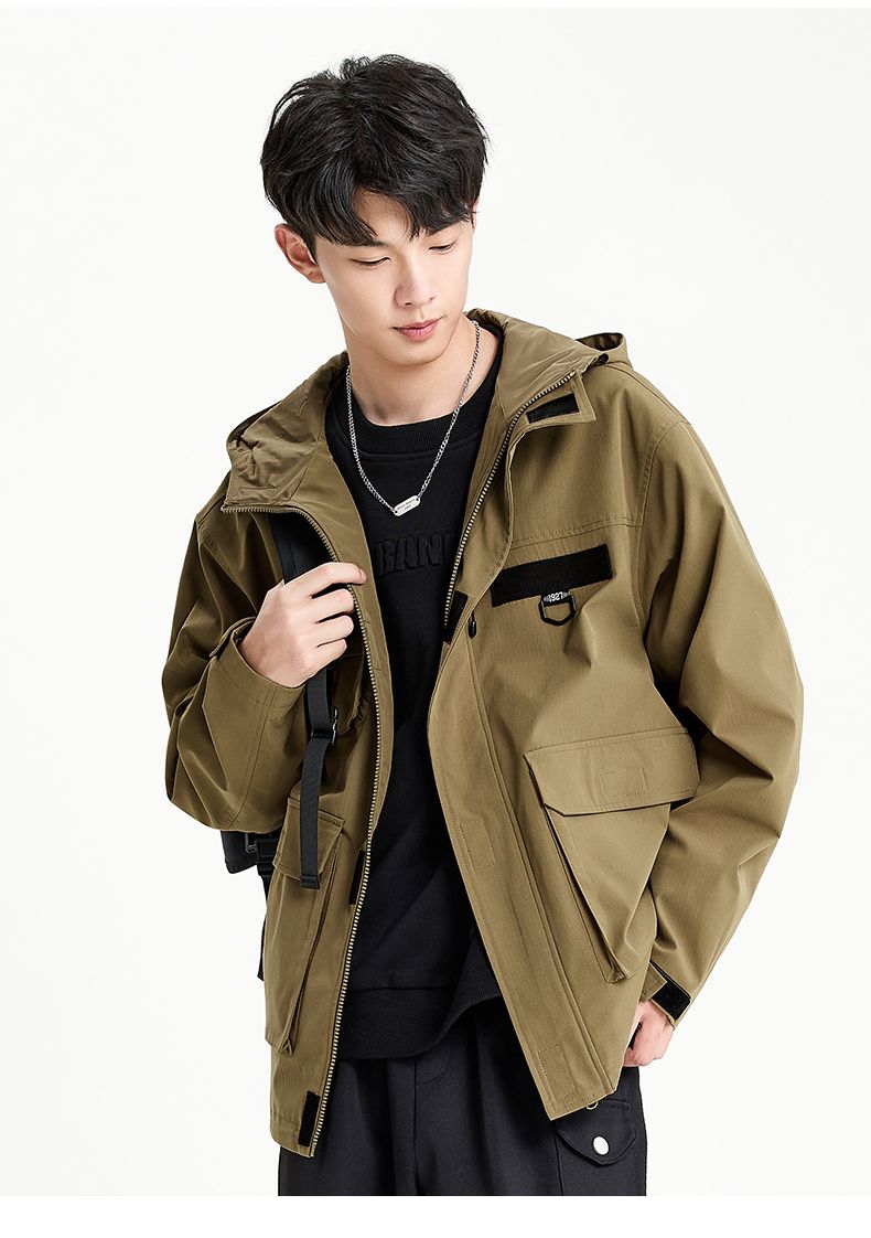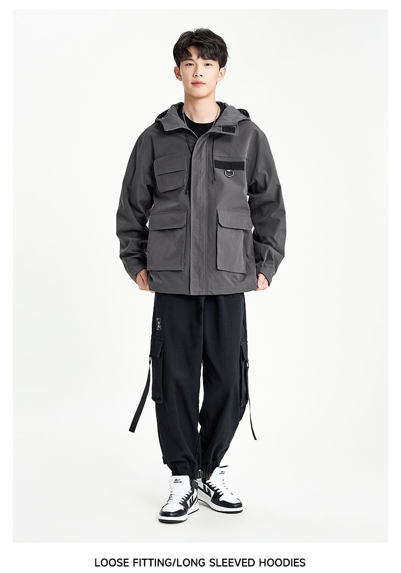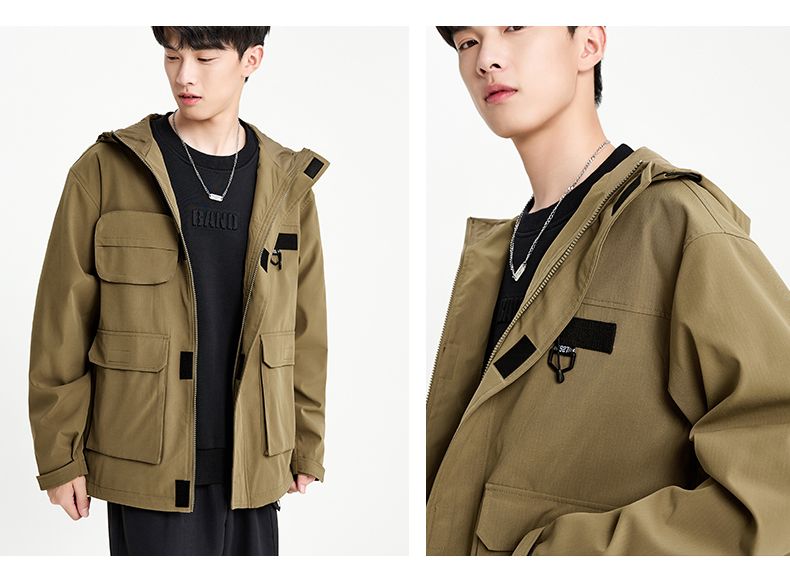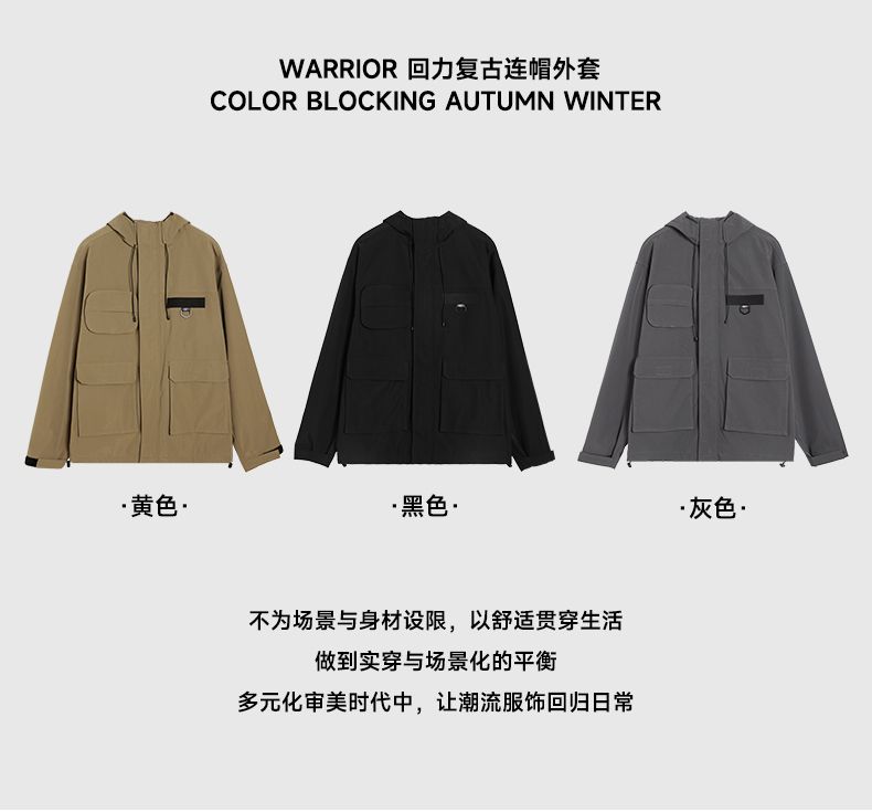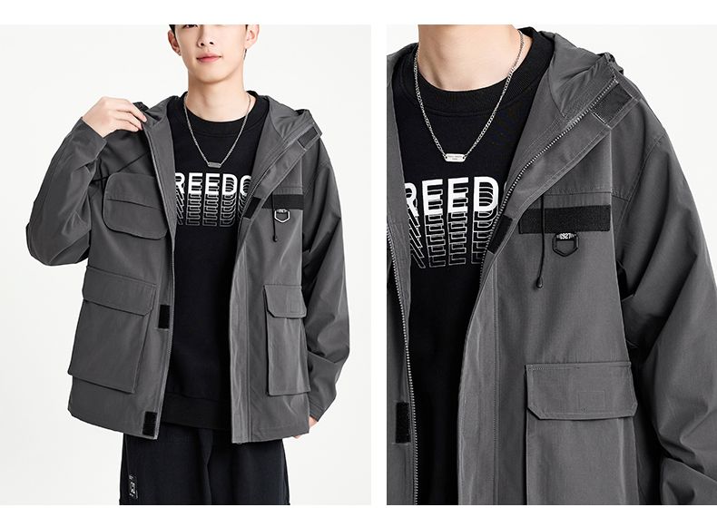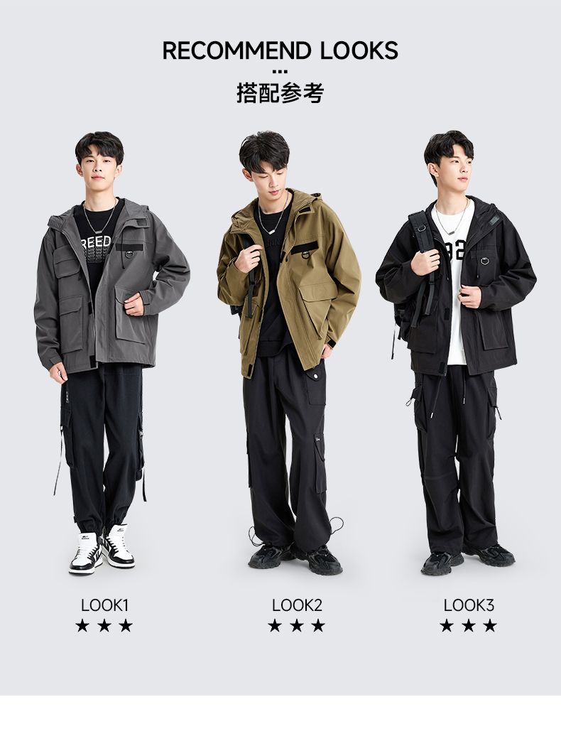 回力外套男2025春秋新款美式机能工装夹克宽松连帽多口袋潮牌上衣