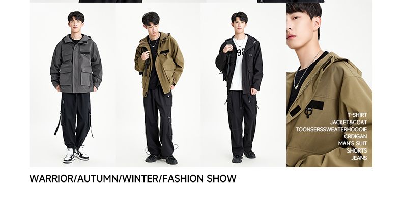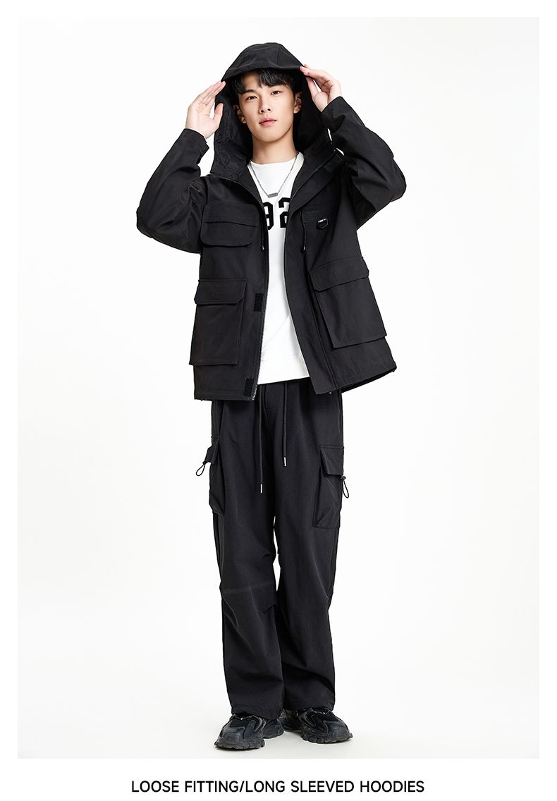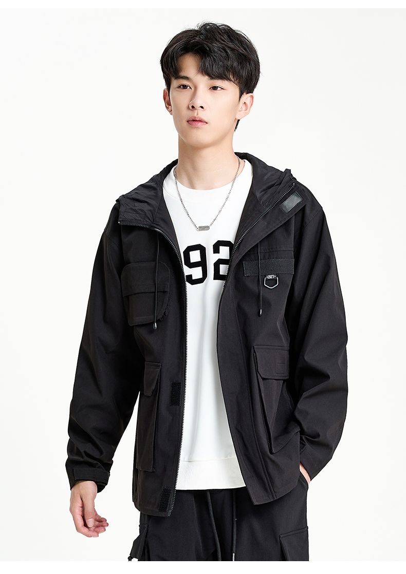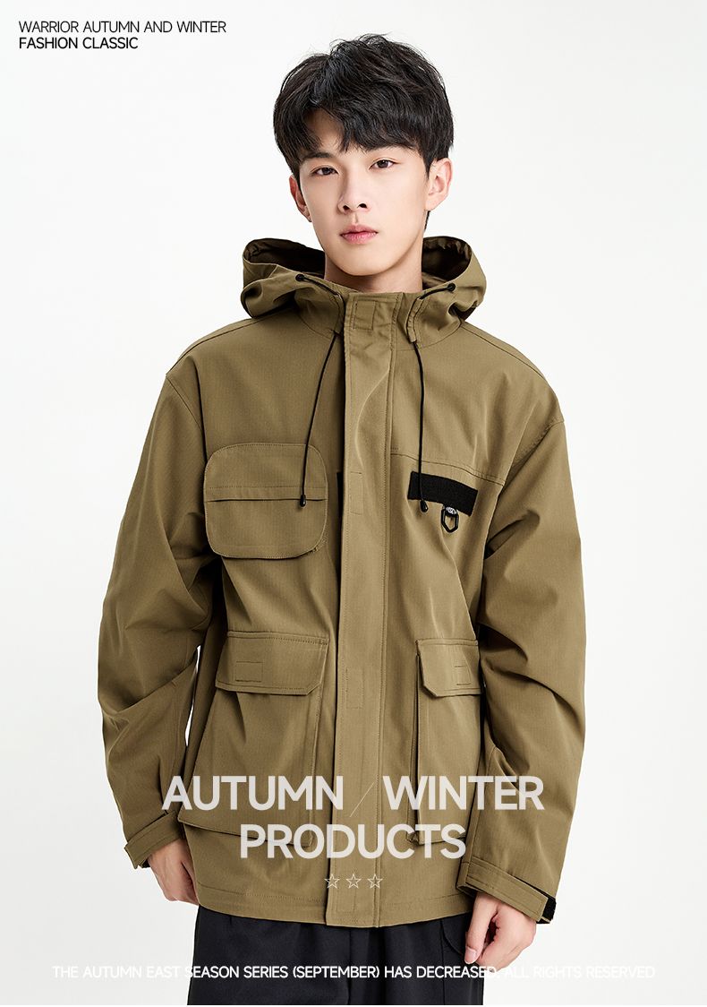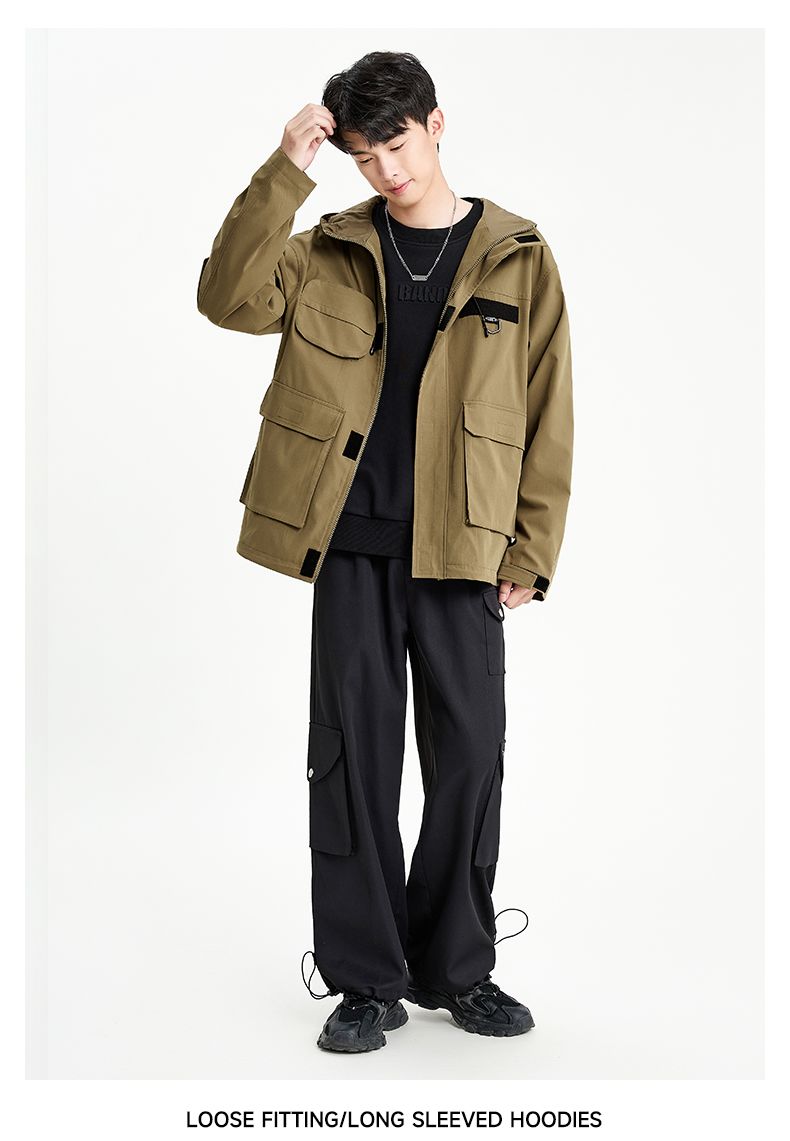 回力外套男2025春秋新款美式机能工装夹克宽松连帽多口袋潮牌上衣