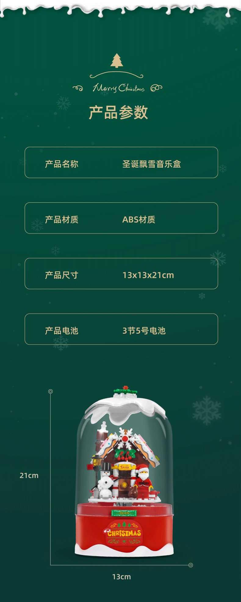 澳嘉特圣诞节雪花积木音乐盒 MXT