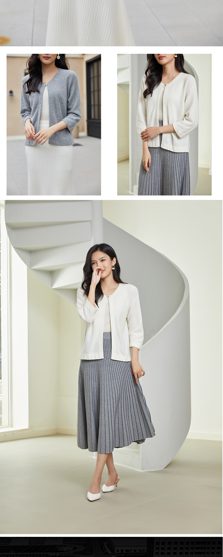东黎 • 小山羊绒女士秋冬圆领宽松气质短款开衫 3103