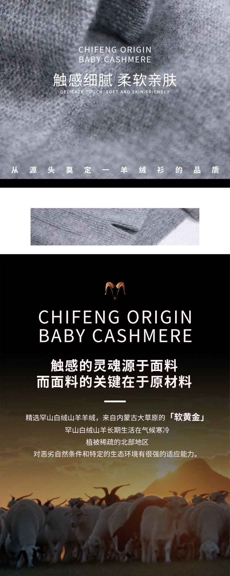 东黎羊绒是赤峰东荣集团自主品牌,自有牧场/羊绒制品全产业链优势,实现了羊绒从“牧场”到“商场”的华丽转变。