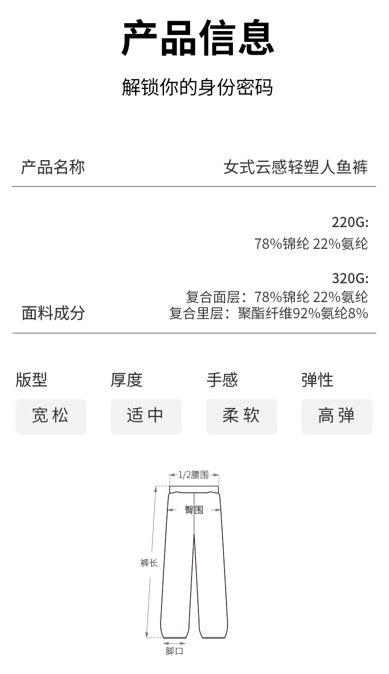 爱帝女士云感轻塑高腰微喇长裤显瘦时尚外穿运动弹力人鱼裤