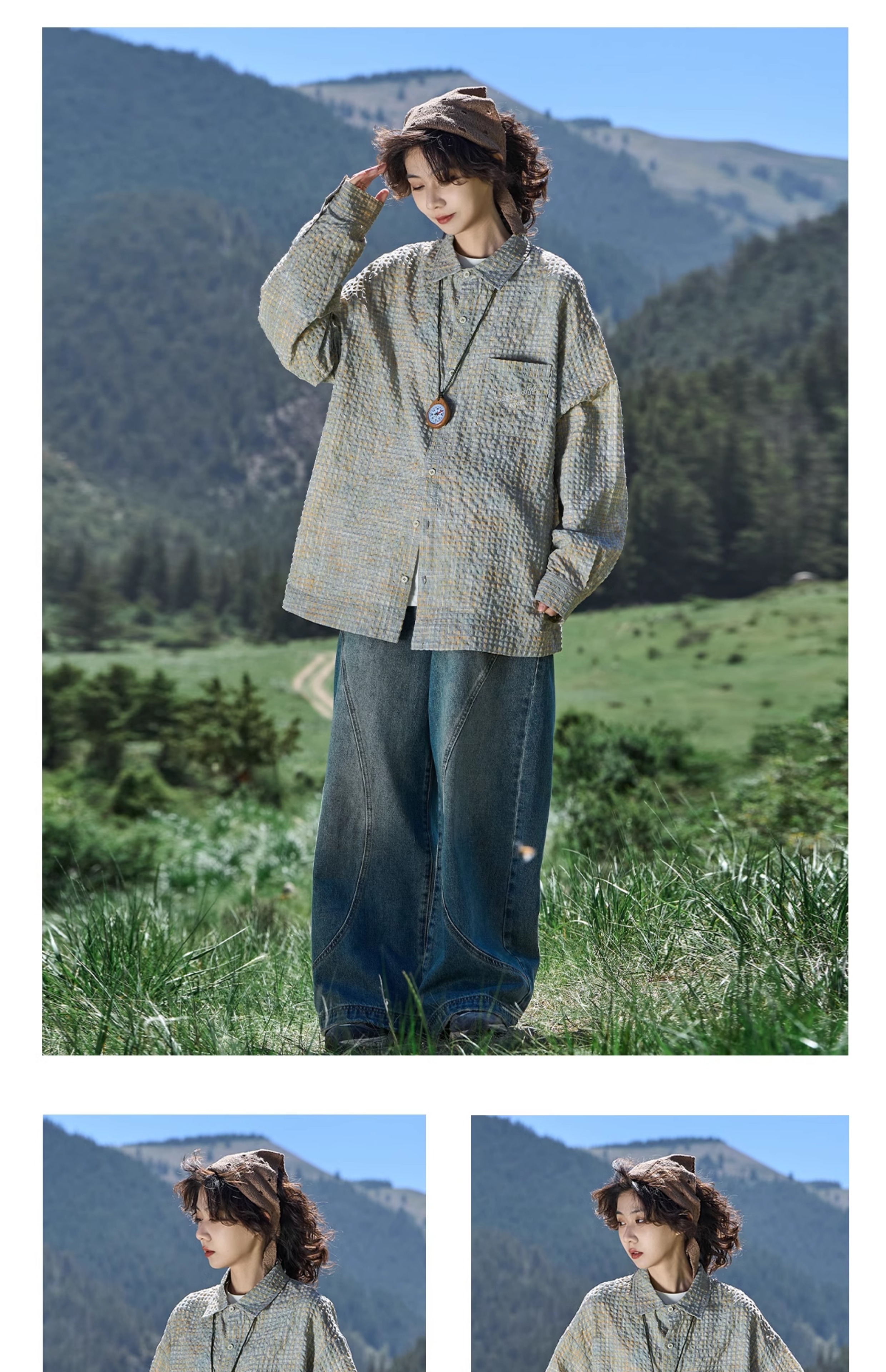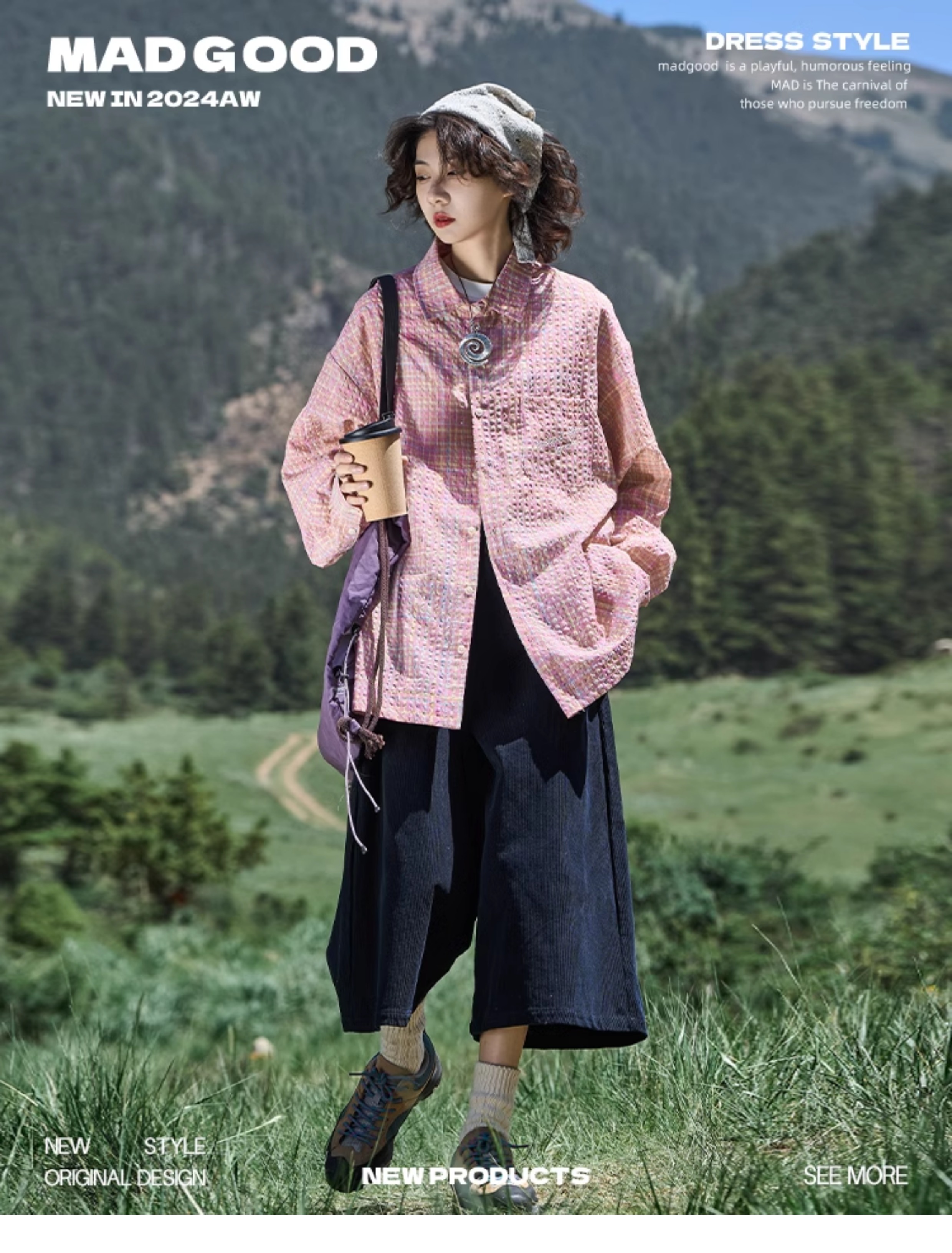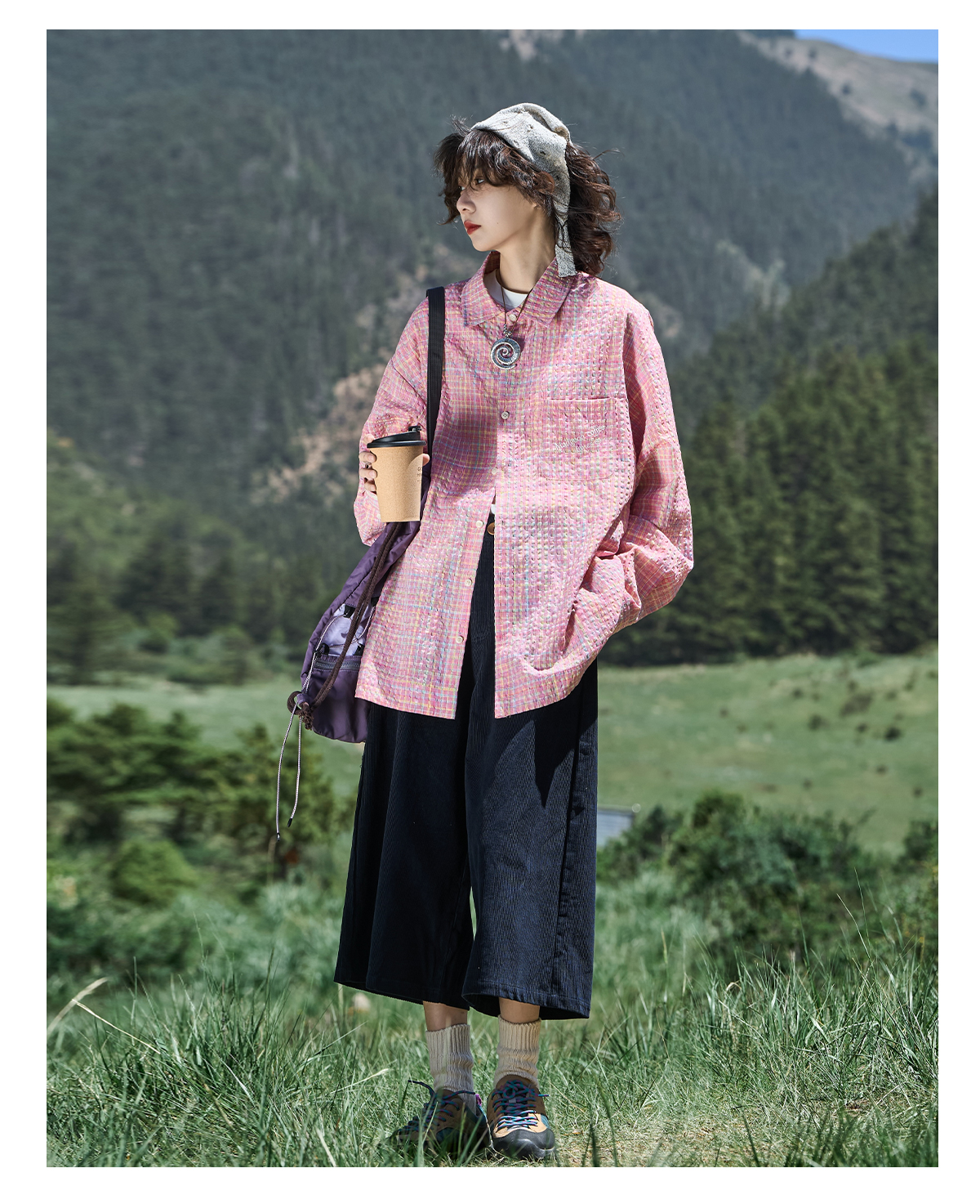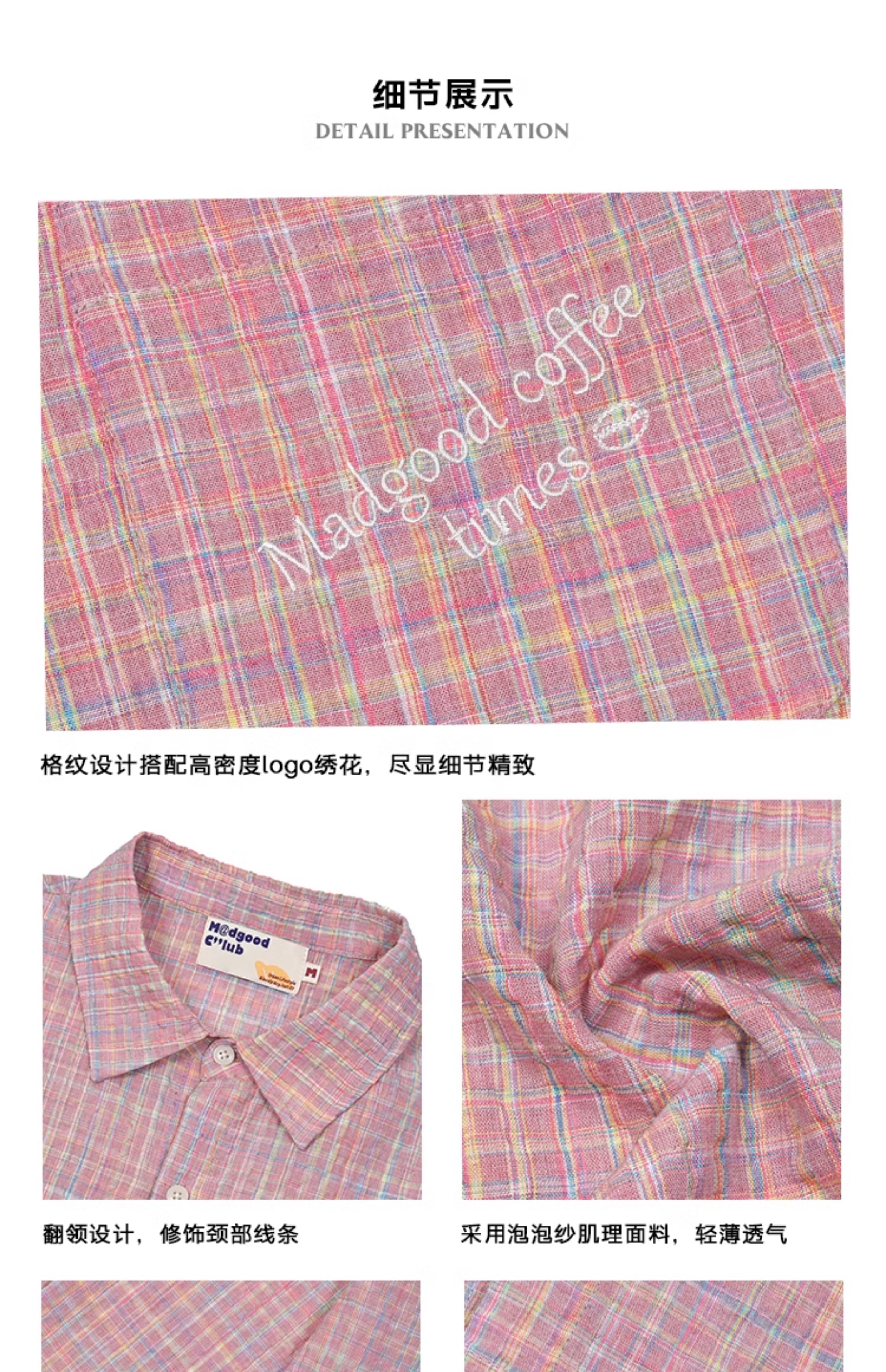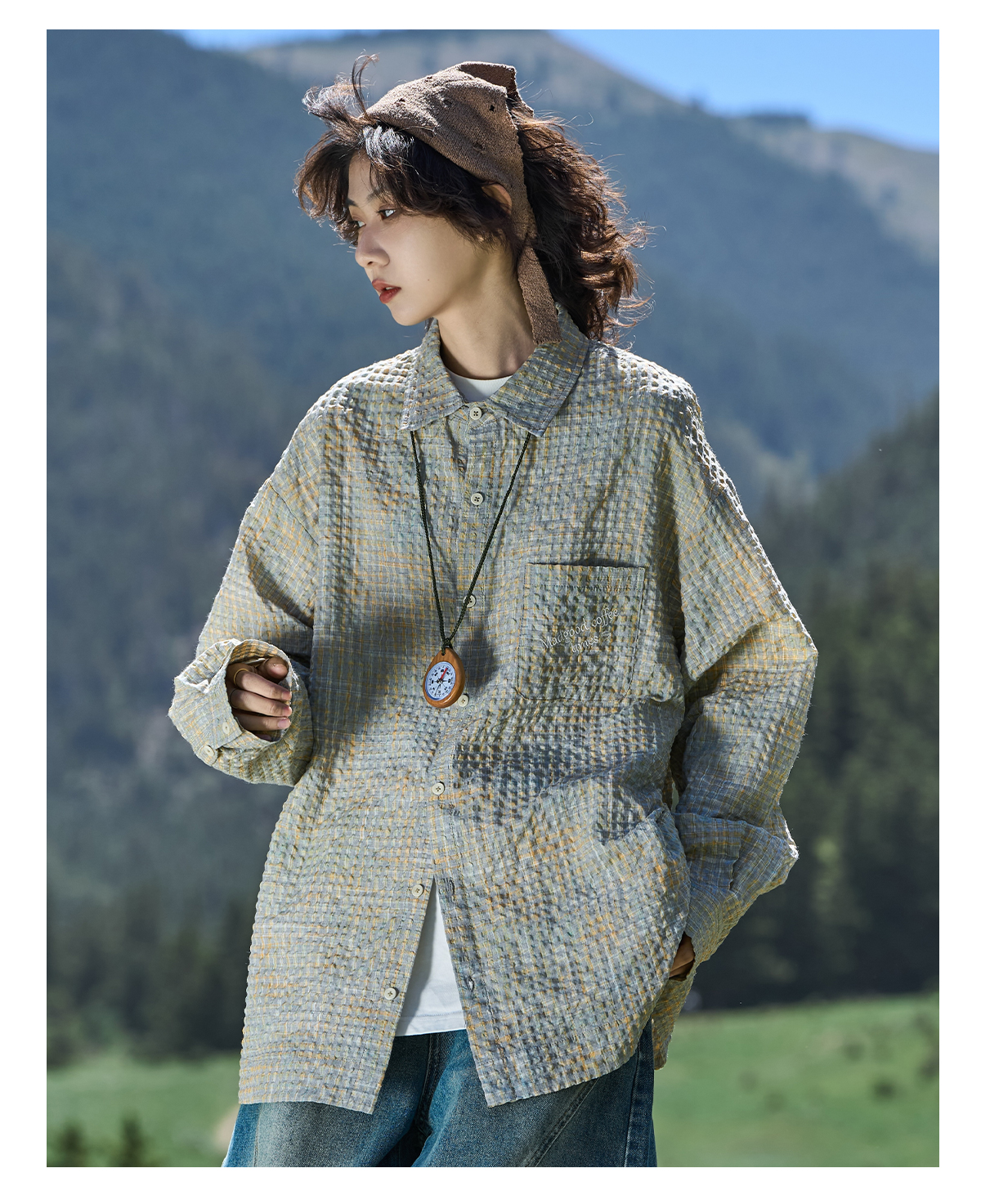 马得工地/MDGDCS243150/刺绣泡泡纱格纹长袖衬衫