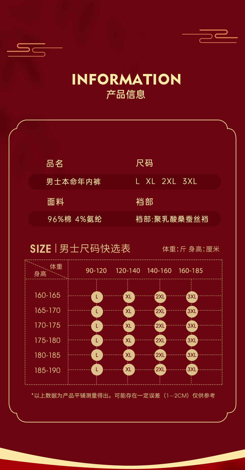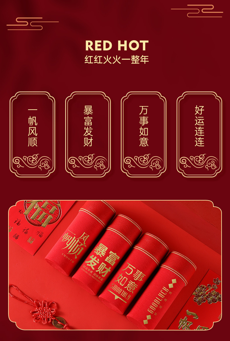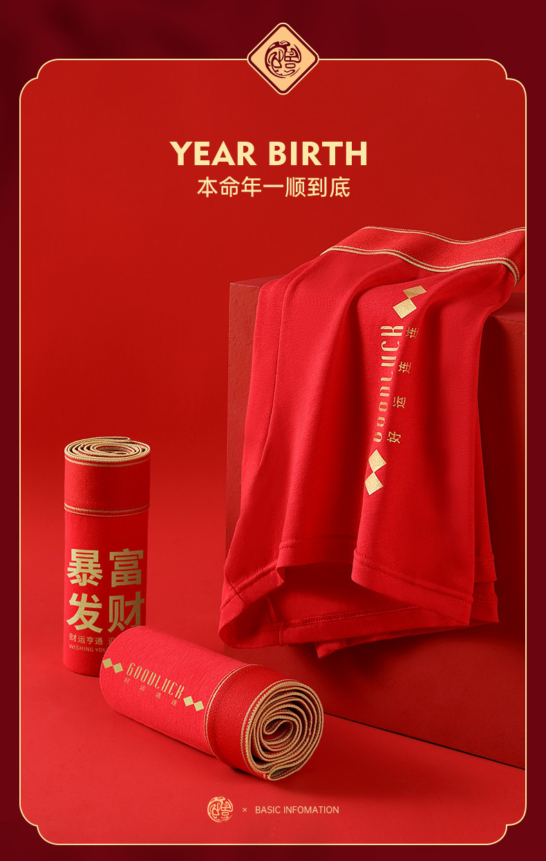 鸿运大吉【纯棉男士本命年红色内裤礼盒】结婚 舒适桑蚕丝 抑菌档 吸湿透气 平角四角裤