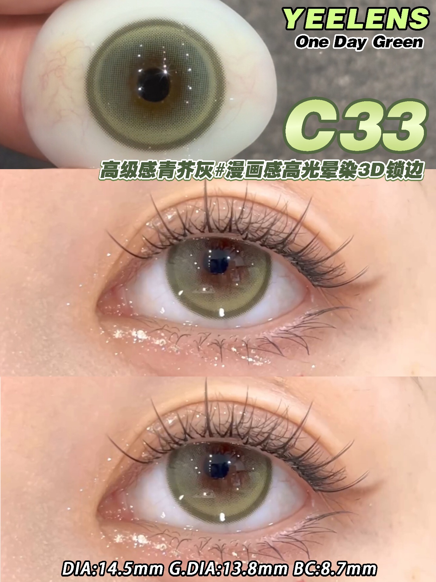 yeelens日抛 C32紫/C33绿 14.5mm 非离子 日抛无售后!!