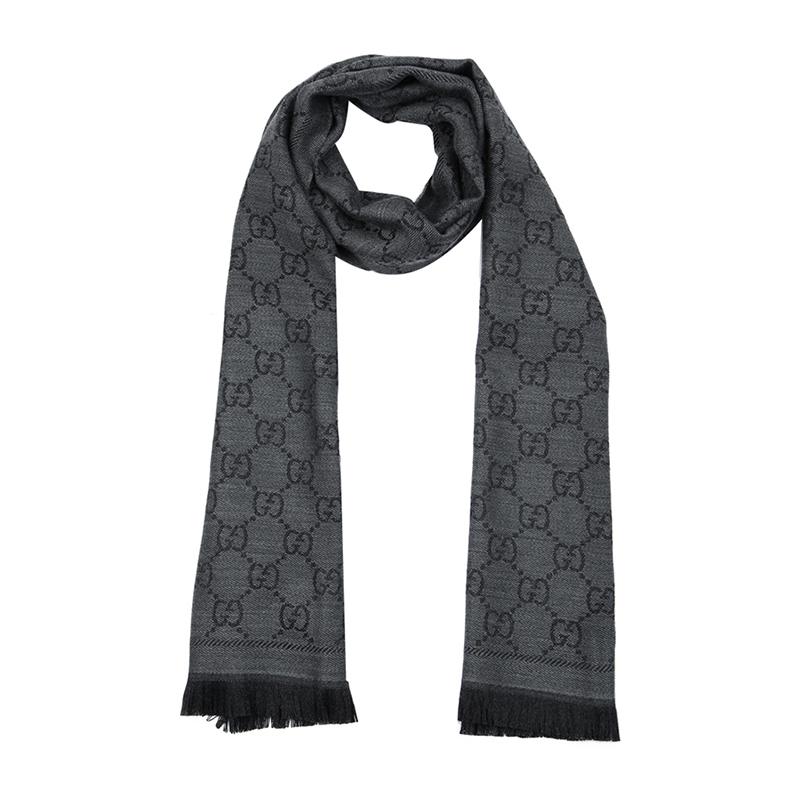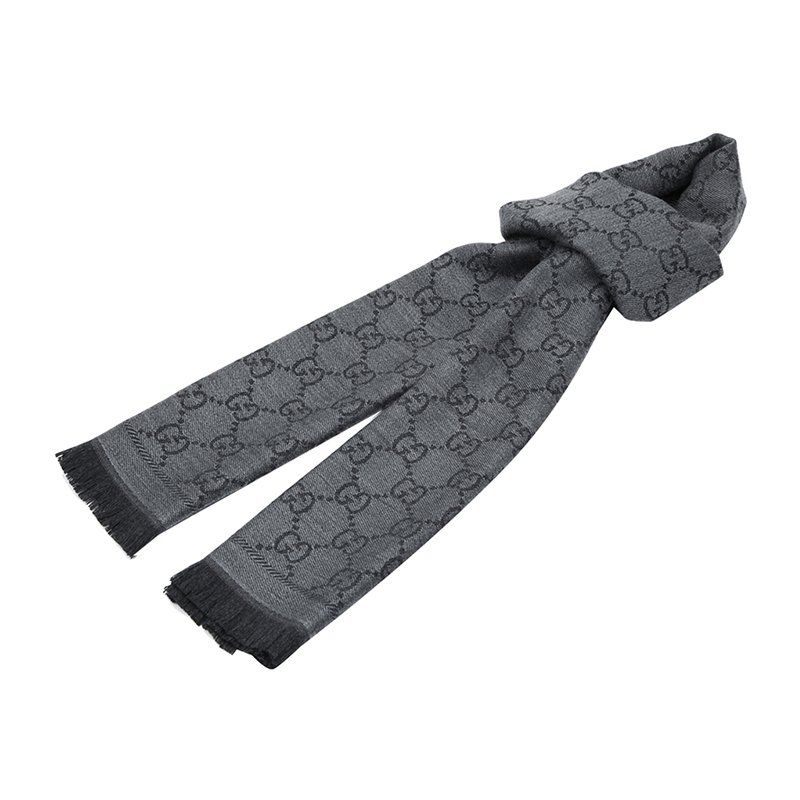 GUCCI/古驰 GUCCI围巾 羊毛双G图案提花中长款流苏边女士围巾 133483 3G200