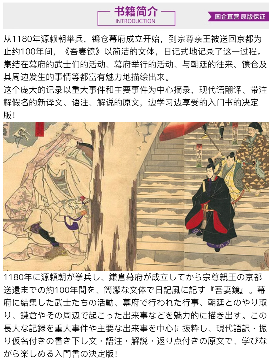 【中商原版】吾妻镜 东鉴 镰仓史书 角川古典文学系列 西田友广 日文原版 吾妻鏡 ビギナーズ.クラシックス 日本の古典