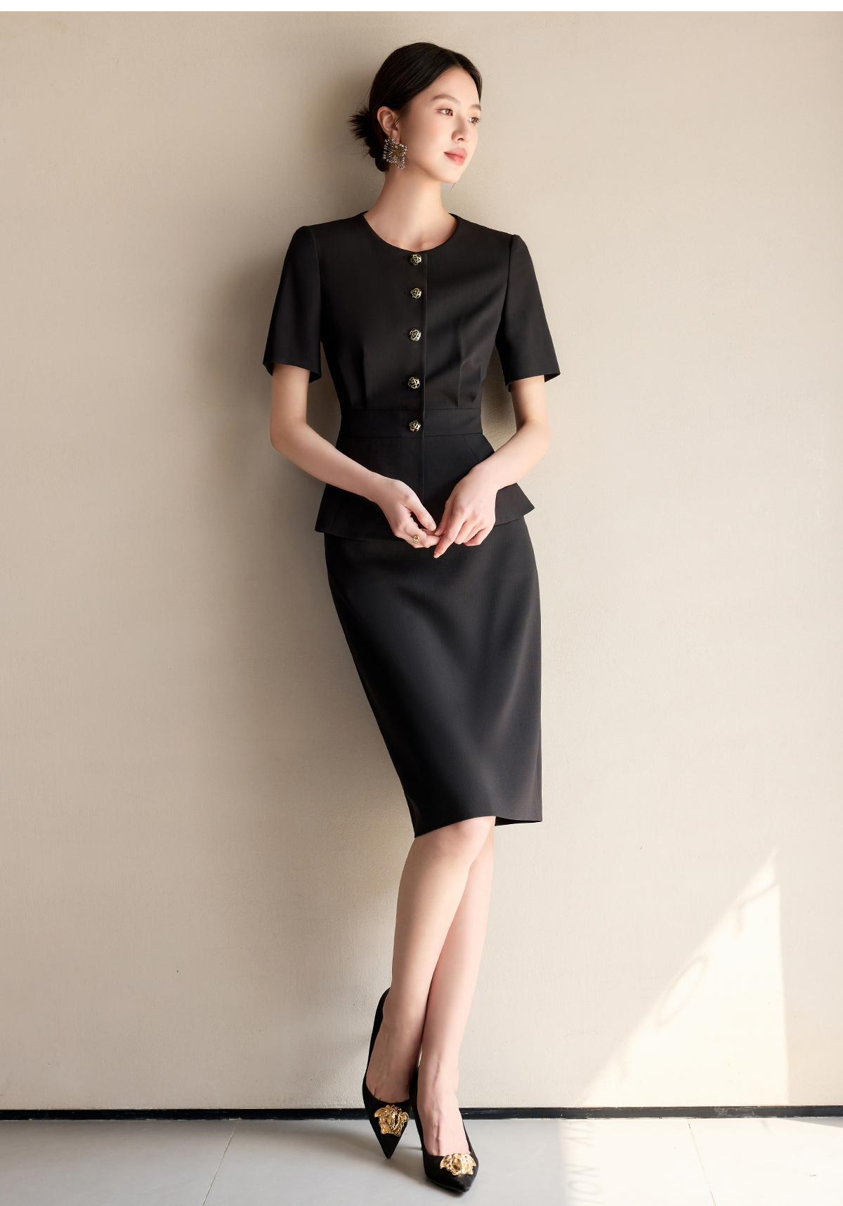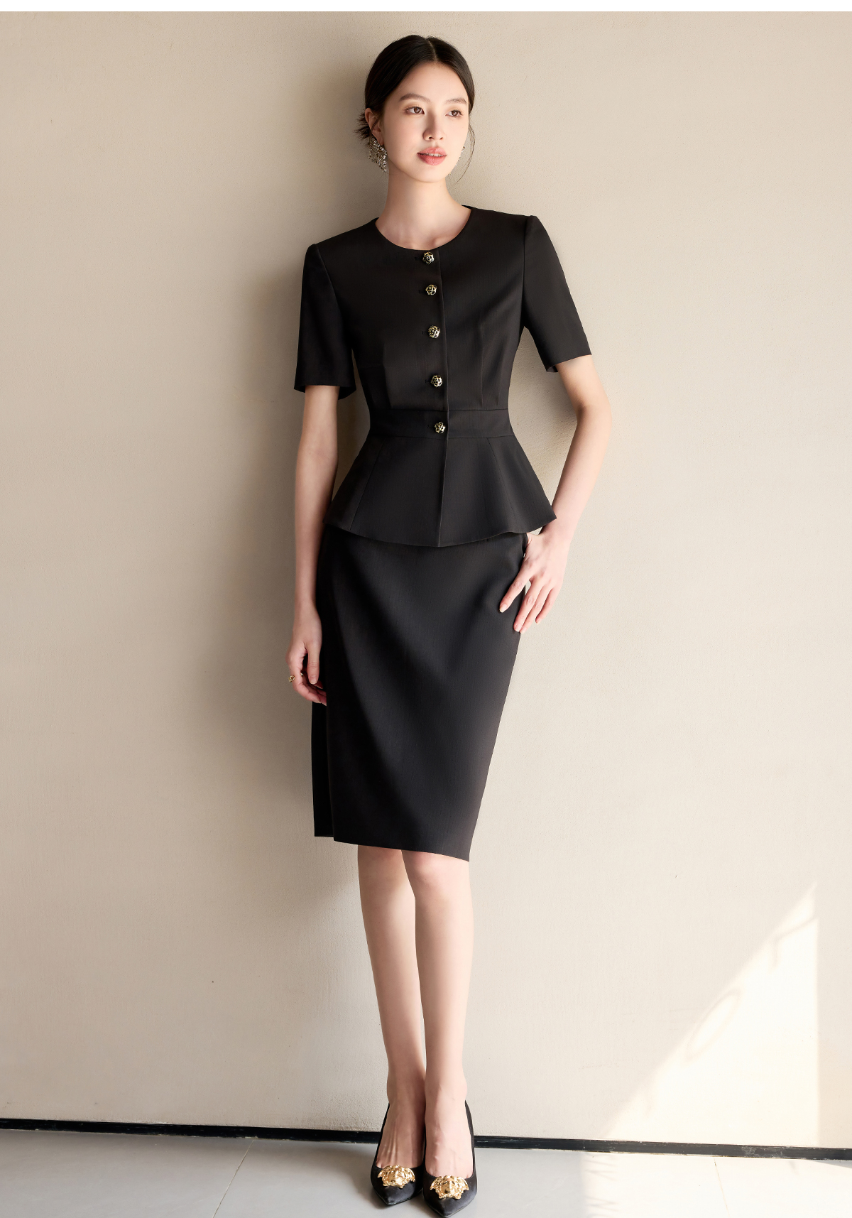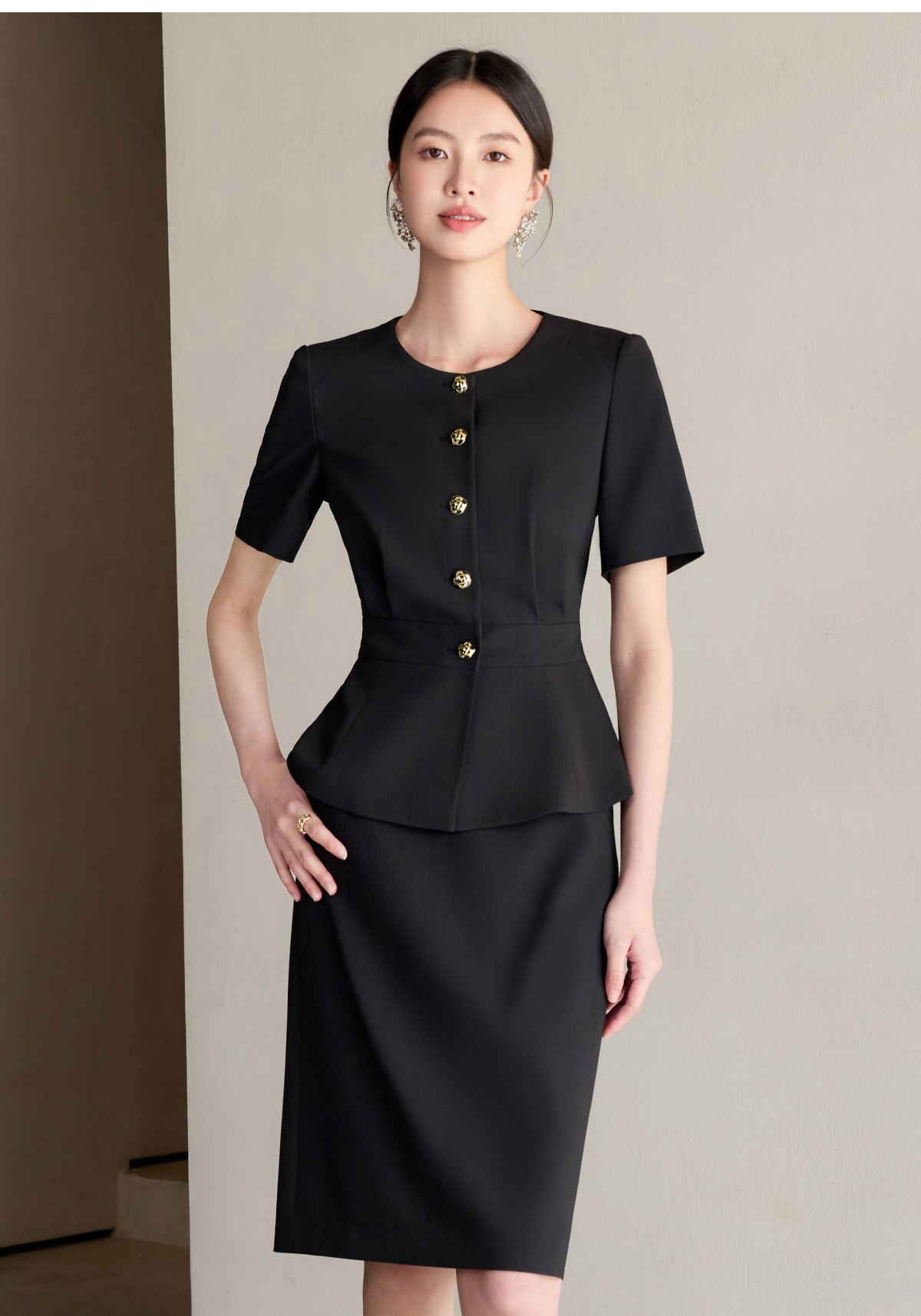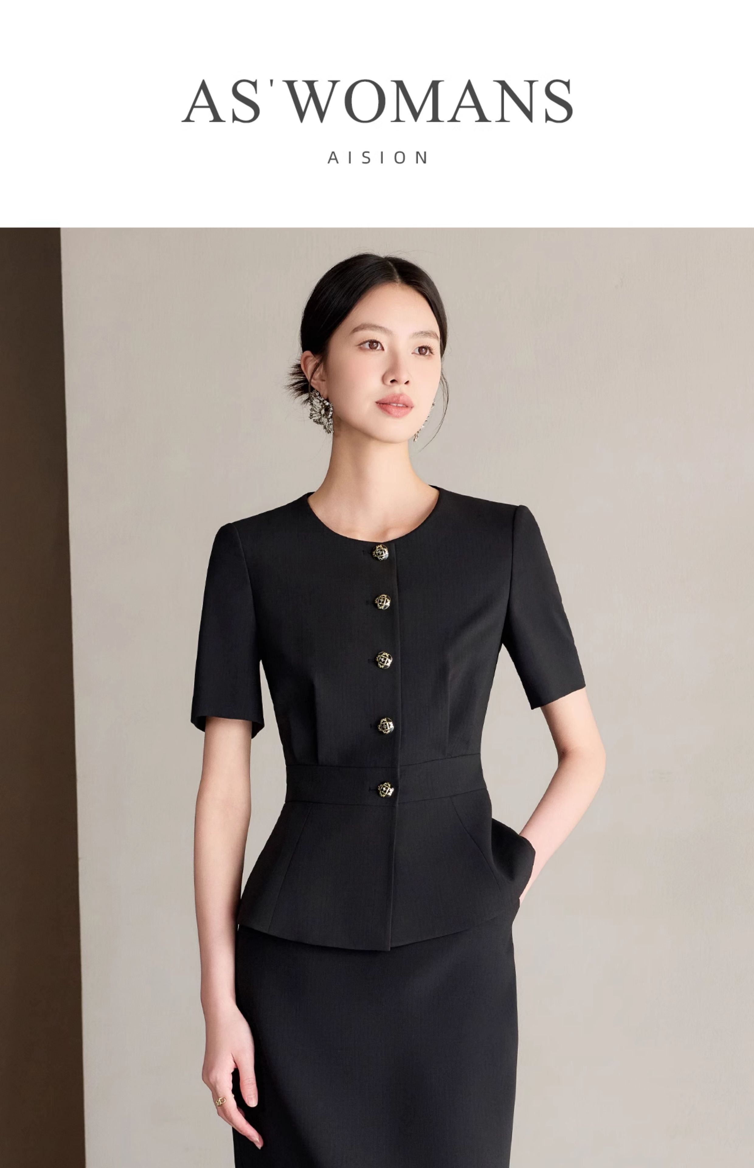 IWY/黑色短袖西装套裙女夏季款气质高级感销售接待职业装工作服25CS745