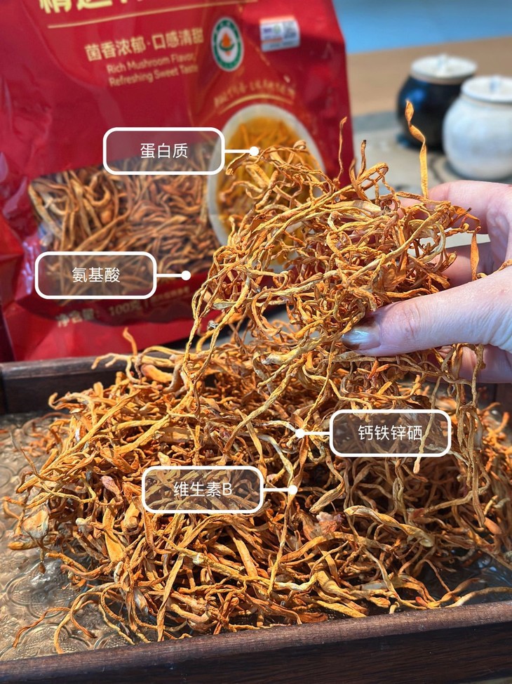 ✅精选有机蛹虫草 富含多种营养成分,包括蛋白质、氨基酸、维生素和矿物质。它还含有虫草素、腺苷等活性成分,具有增强免疫力、补🫁益sheng、滋阴养颜的功效 无论是体质虚弱、容易疲劳,还是想要提升免疫力的人,虫草花都是你的不二选择!💪 ✅虫草花的独特魅力 虫草花的口感鲜嫩,带有淡淡的菌香,无论是炖汤、泡茶还是炒菜,都能为菜肴增添一份独特的风它的滋补效果温和而不燥热,适合大多数人群长期食用 是真正的“温和滋补专家”!