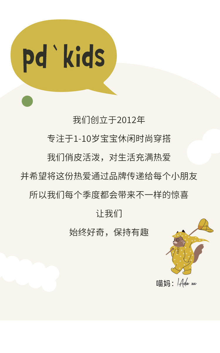 Purrfect-Diary专注于贴近自然随性的穿着概念,轻奢平价的童装文化传播,在产品设计上更加注重婴童穿着的舒适性、安全性、更出众的国际化品牌,将欧美的育婴文化在中国进行深入的传播与推广。