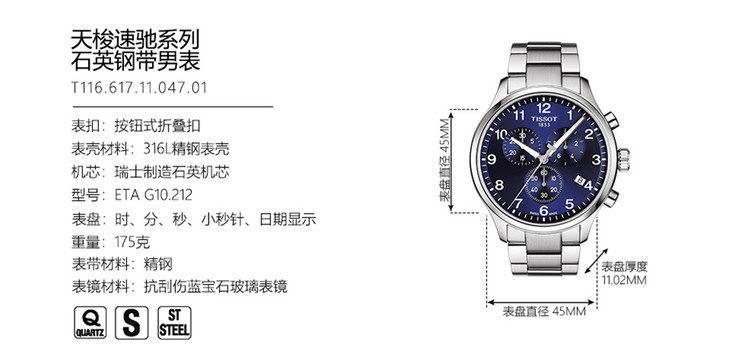 | 品牌 | 天梭 TISSOT | 型号 | T116.617.11.047.01 |