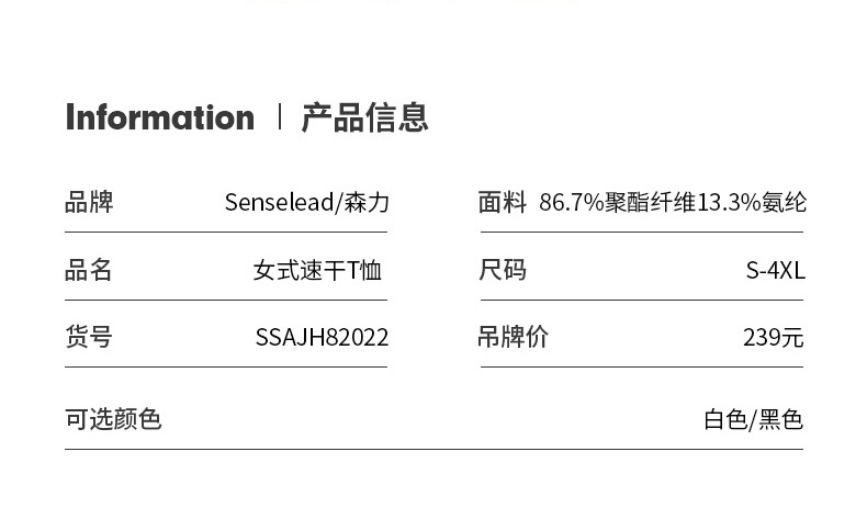 Senselead森力/女式速干圆领T恤 SSAJG82014