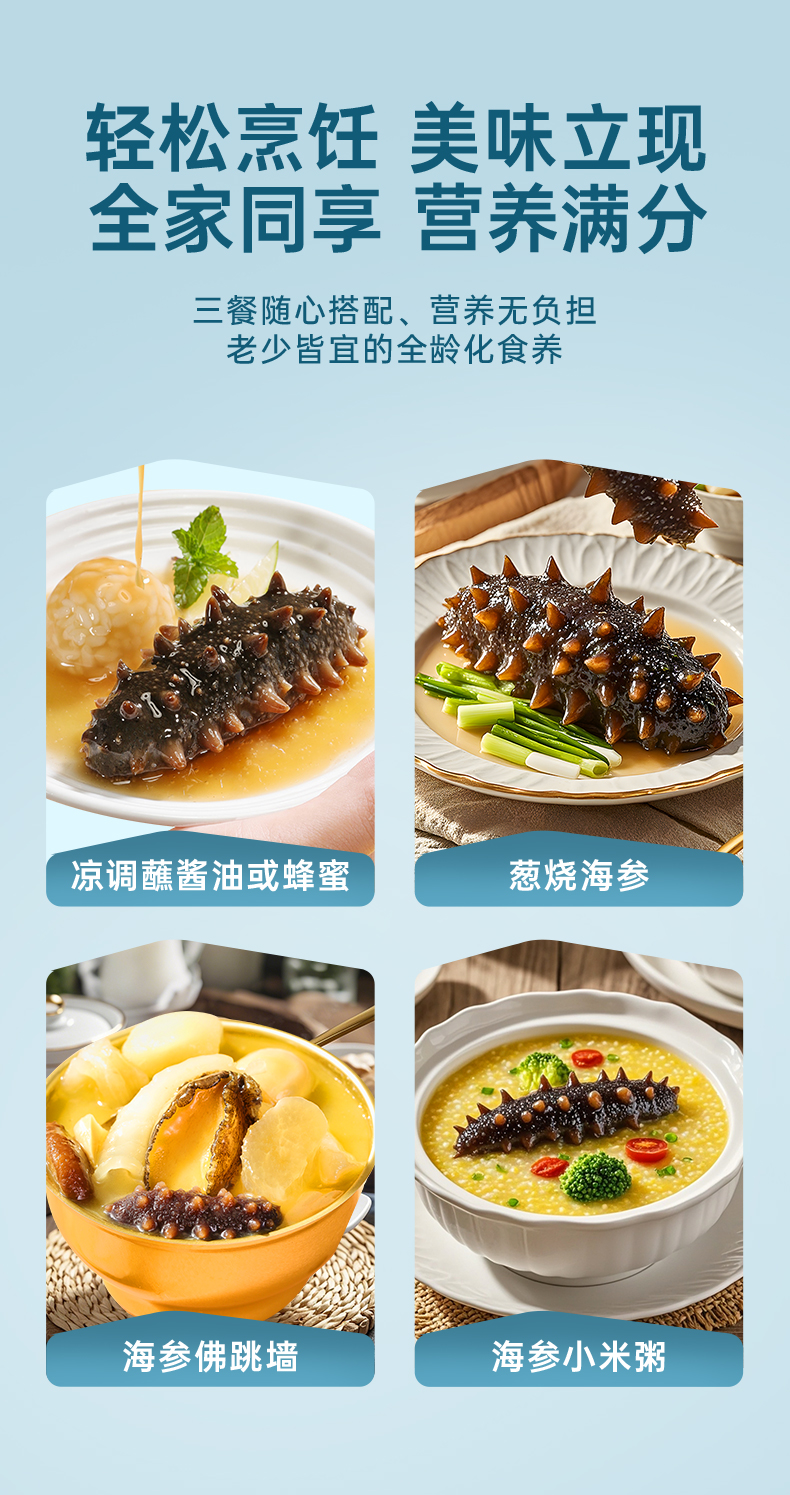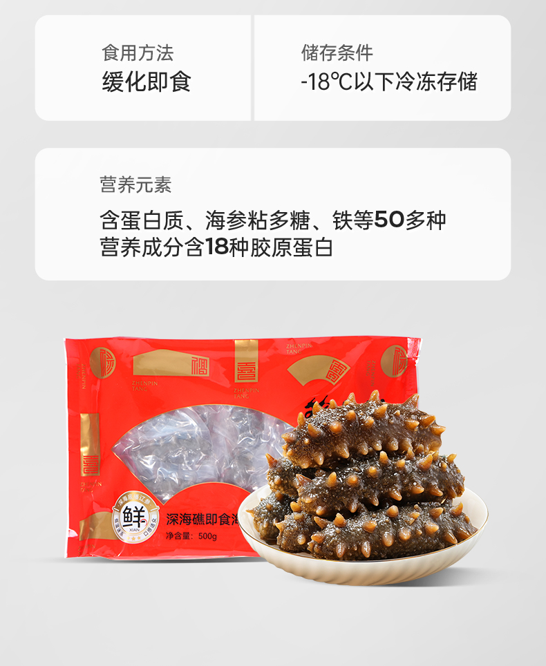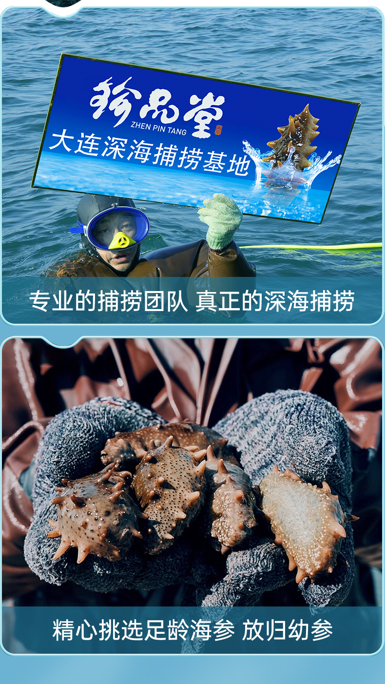 珍品堂即食海参 大连原产 辽刺参 肉质饱满 参壁厚实 口感鲜美