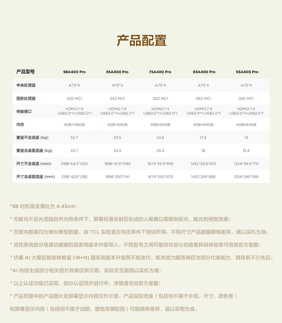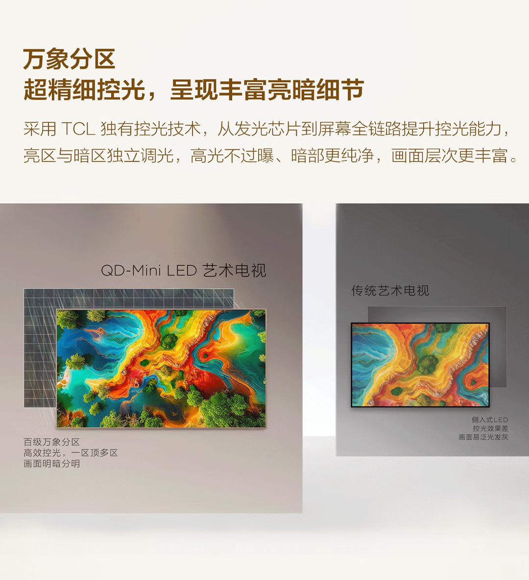 TCL电视 A400 Pro 98英寸 QD-Mini LED艺术电视 极致美学设计 艺术氛围屏 万象分区 灵控系统3