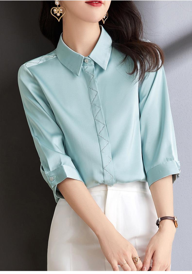 娜璐多 女士雪纺衬衫两件套2023春夏小香风休闲衬衣套装立领绿色薄款上衣